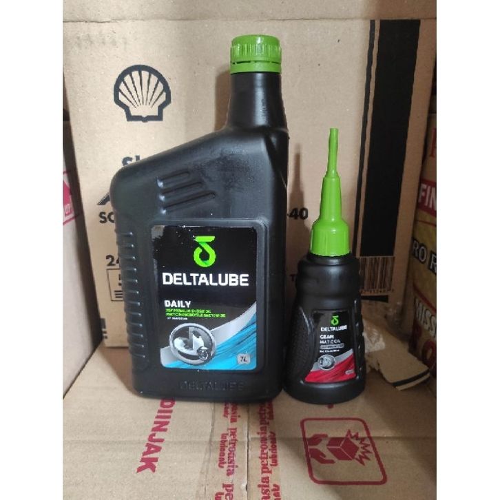 paket oli deltalube sccoter matic sae 10-30 + oli gear 120 ml 0.8 lt - 1 lt daily 757 premium engine