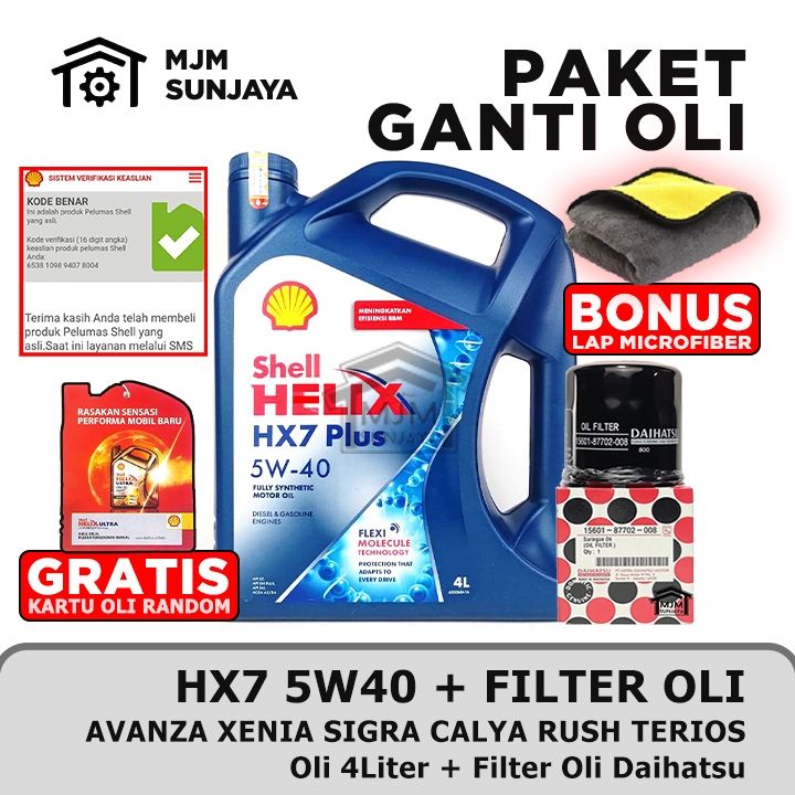 GRATIS FILTER OLI PAKET Ganti Oli Mesin Shell Helix HX7 SAE 5W-40 4 Liter DAIHATSU Avanza Xenia