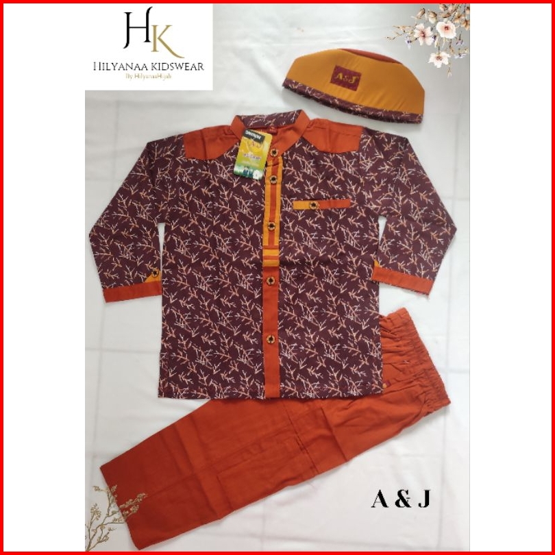 A J Setelan Koko Muslim Abbasi Motif Akar Lengan Panjang Anak Usia 3-13 Tahun