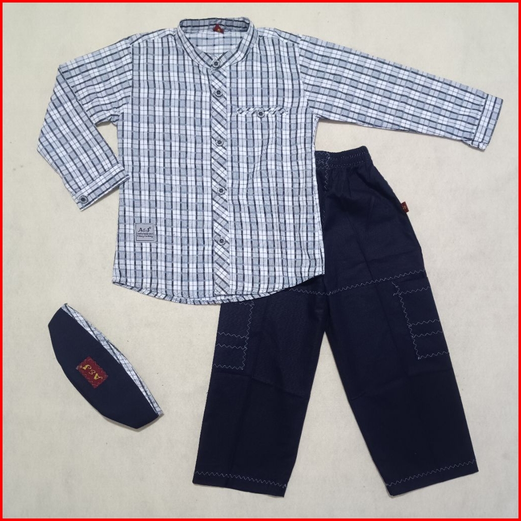 Baju Koko Anak Katun Kotak A J Lengan Panjang New