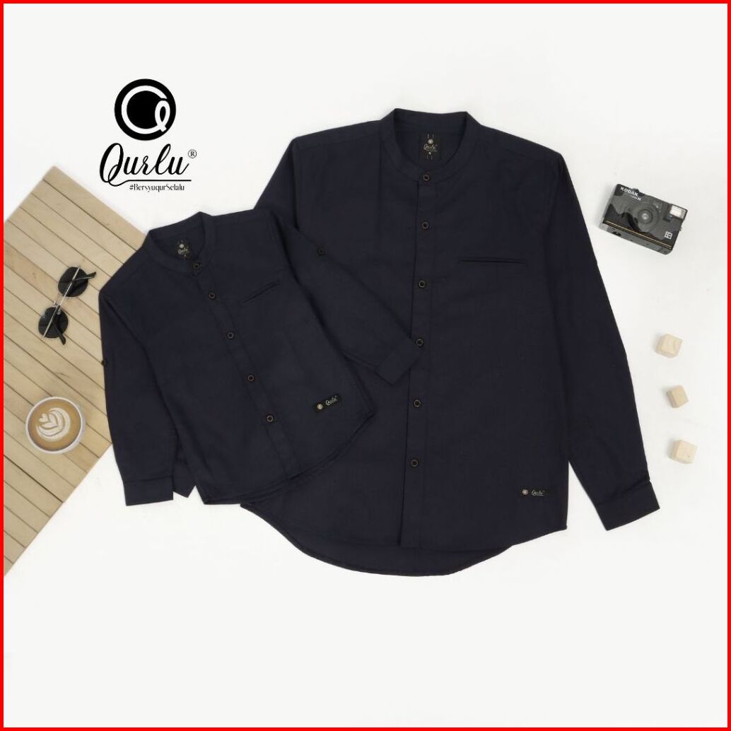 Qurlu - Kemeja Koko Dewasa Anak Warna Hitam Baju Couple Ayah Dan Anak Laki-laki Baju Koko Pria