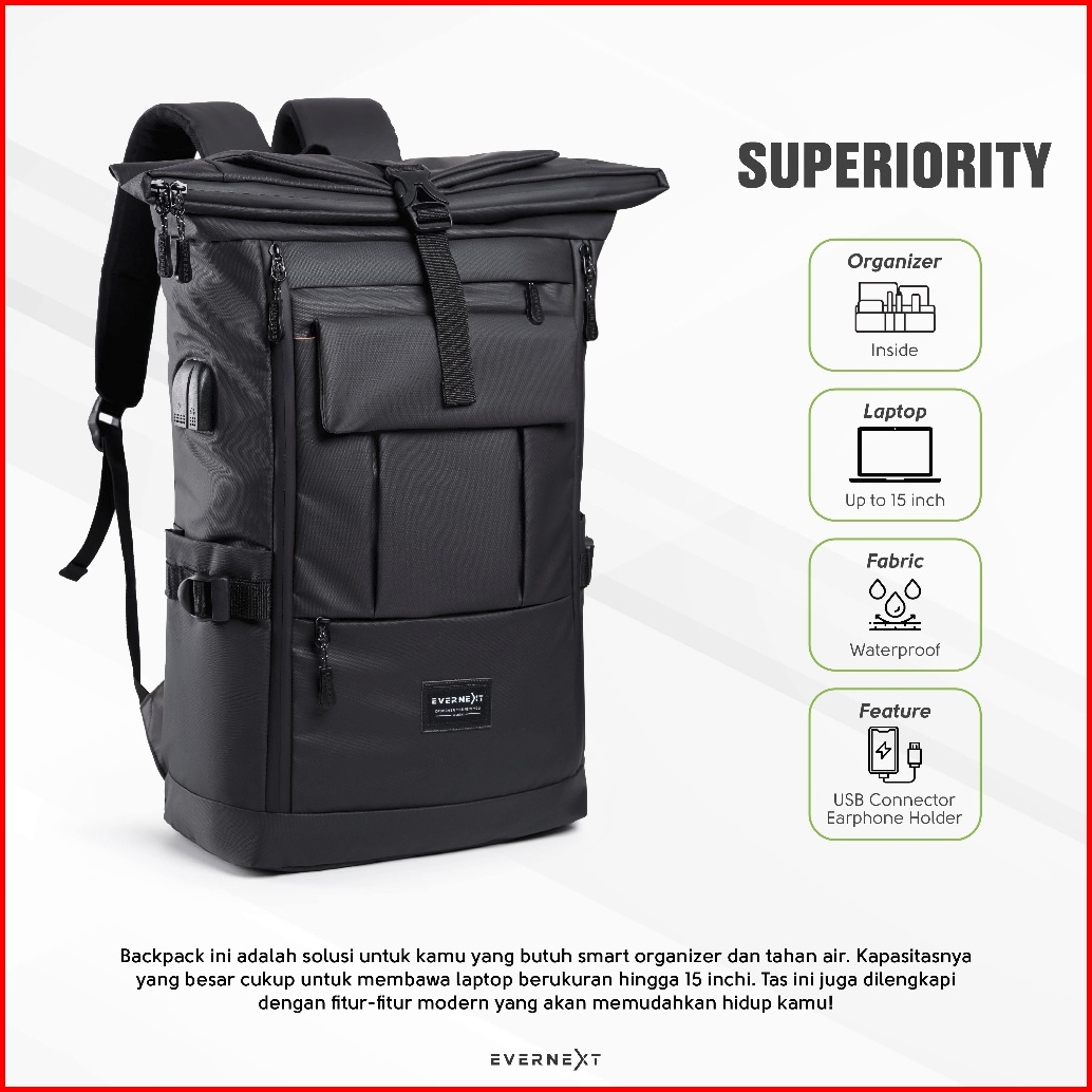 Tas Ransel Pria Waterproof Backpack Outdoor Tas Travelling Sekolah Kuiah Kerja Evernext Hummer