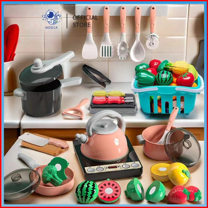 Nodia Mainan Masak Masakan Set Mainan Dapur Anak Bermain Rumah Mainan Cooking Set Rumah Bermain Anak-anak Set Mainan Mai