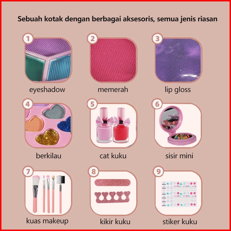 Girl Pretend Play Make Up Toys Set Mainan Make Up Anak Dengan Fungsi Asli - Kado Anak Cewek