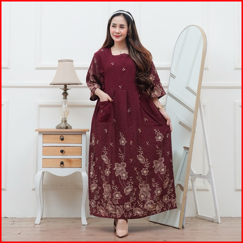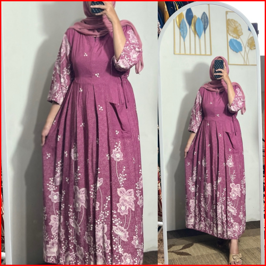 Daster Cibi Long Salwa Busui Resleting Kantong Depan Lengan 3 4