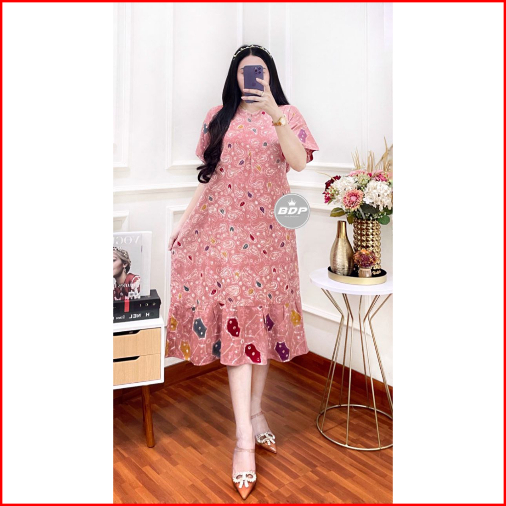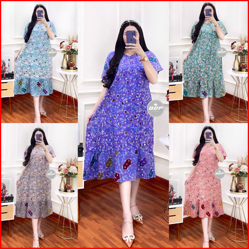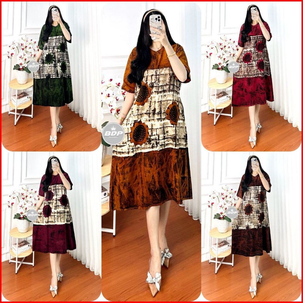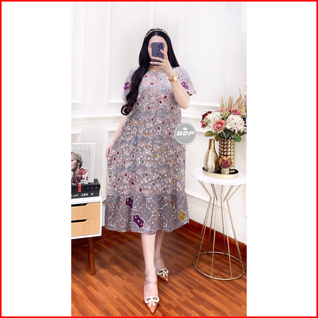 Daster Wanita Pastel Premium Busui Resleting Depan Lengan Pendek Motif Kekinian - Baju Tidur