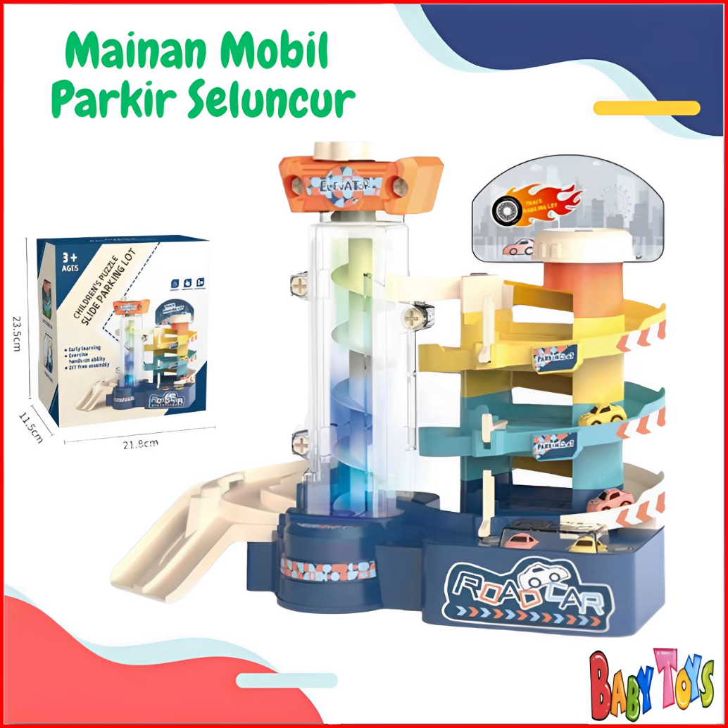 Babytoys Mainan Edukasi Anak Laki Laki Bayi Seluncuran Track Mobil Mobilan Musikal Parkir 3 Tingkat