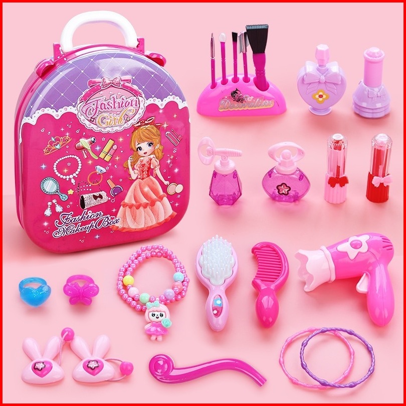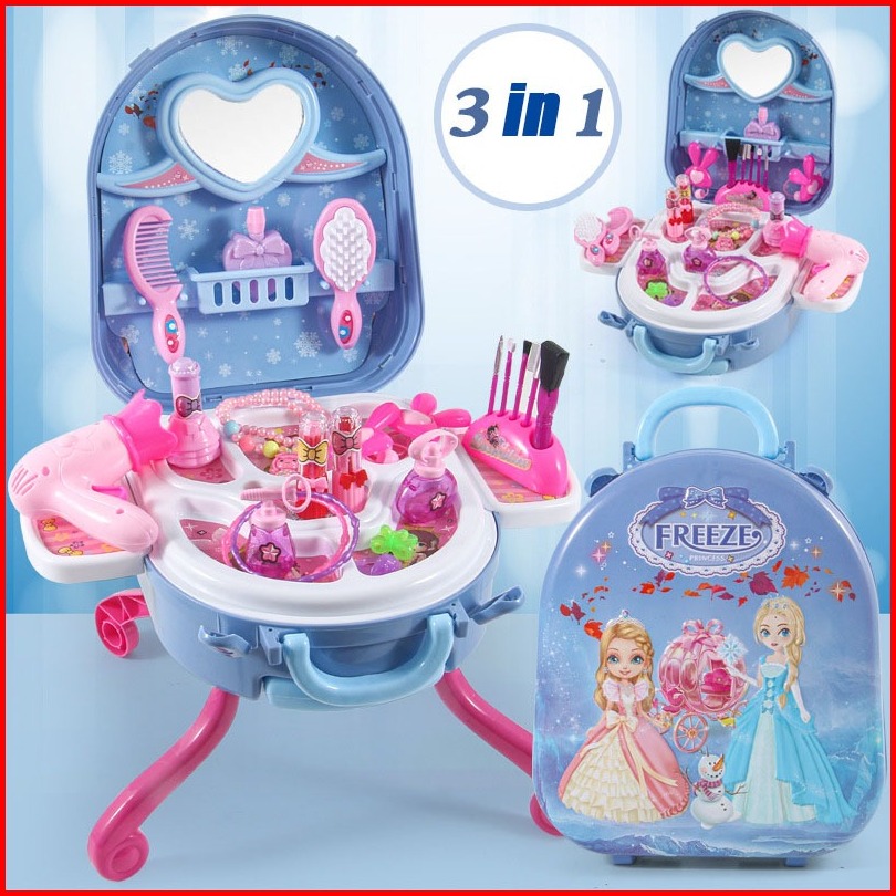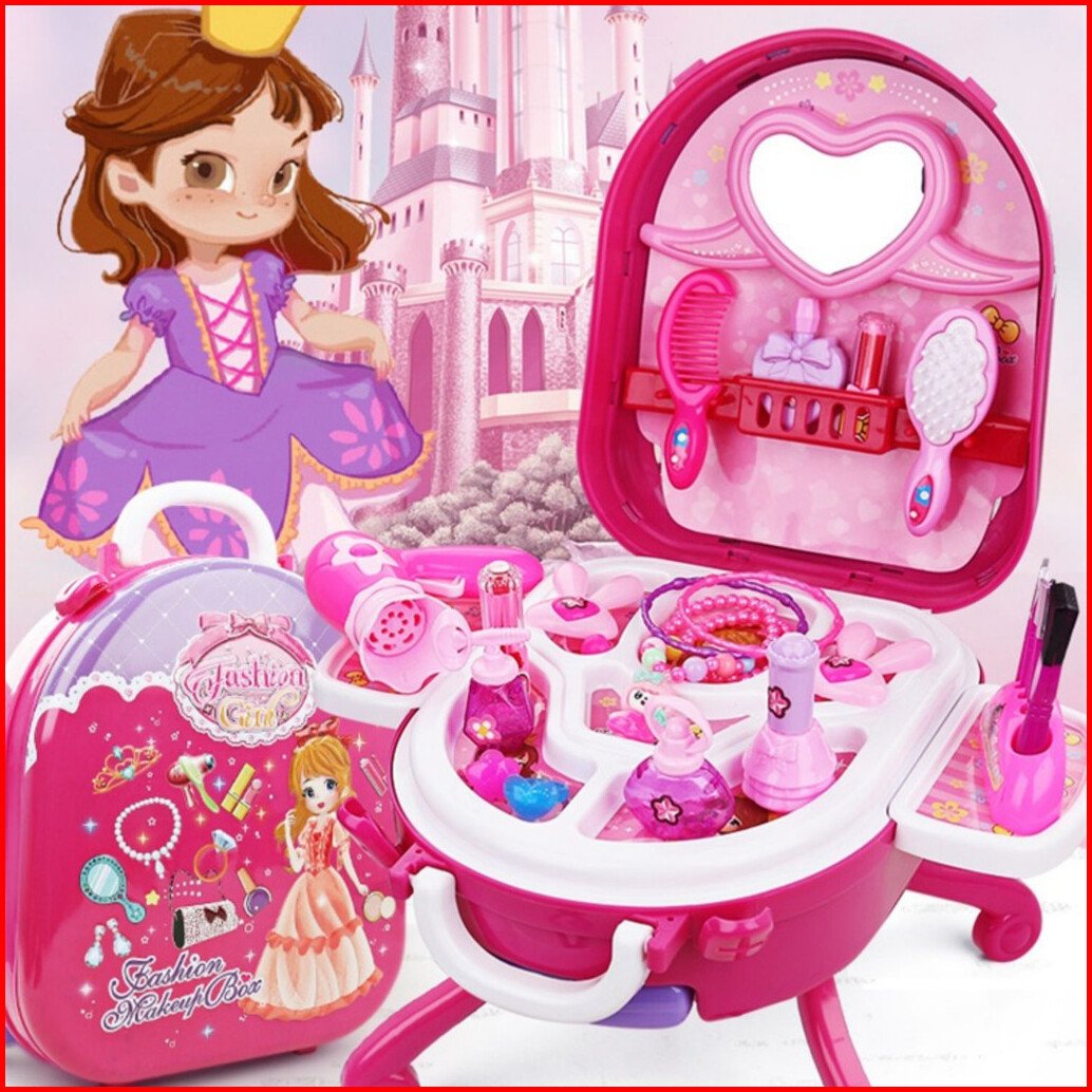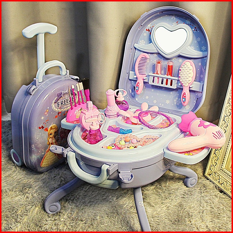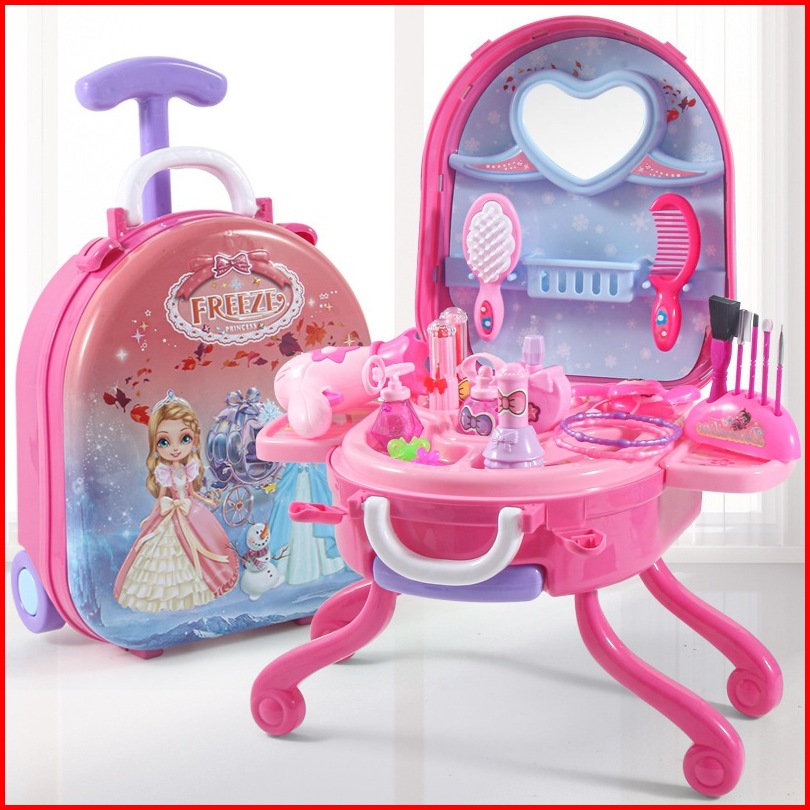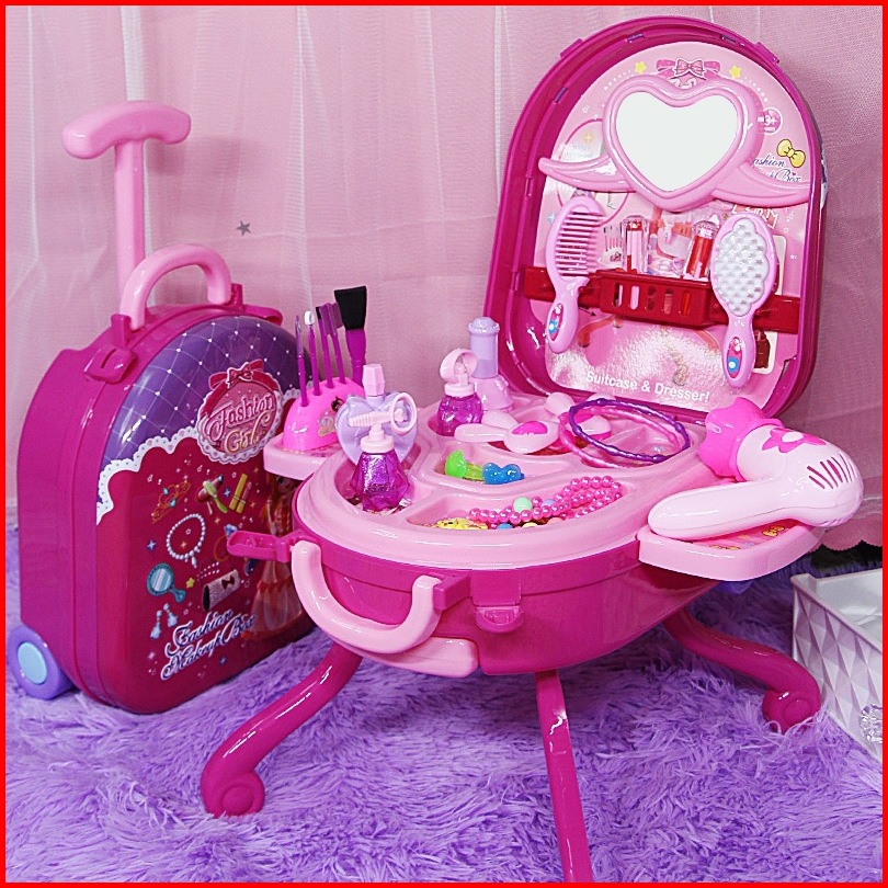 Kids Simulated Makeup Box Toy Mainan Anak Meja Rias Koper Trolley Beauty Dressing Koper Bagasi