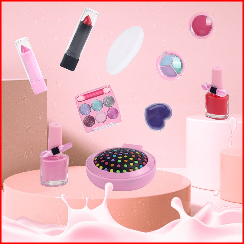 Set Kosmetik Kecantikan Anak Perempuan Make Up Set Lipstik Nail Riasan 26pcs Aksesoris Lengkap Mudah Dihapus