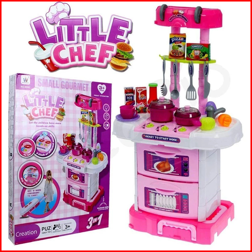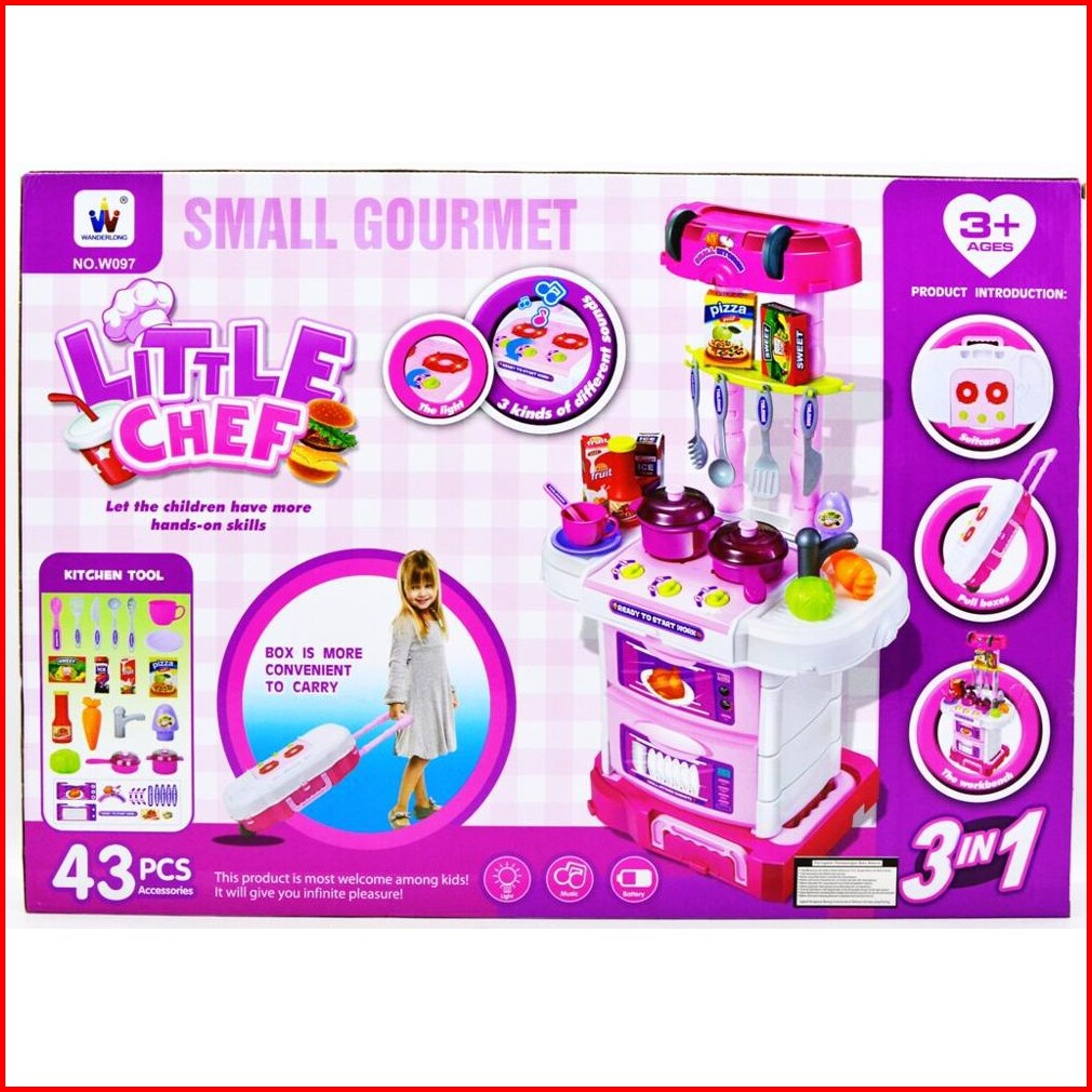 Promo Termurah Mainan Anak Perempuan Little Chef Kitchen Set Koper 3in1 Pink W097- Kado Hadiah Mainan Masak Masakan Main