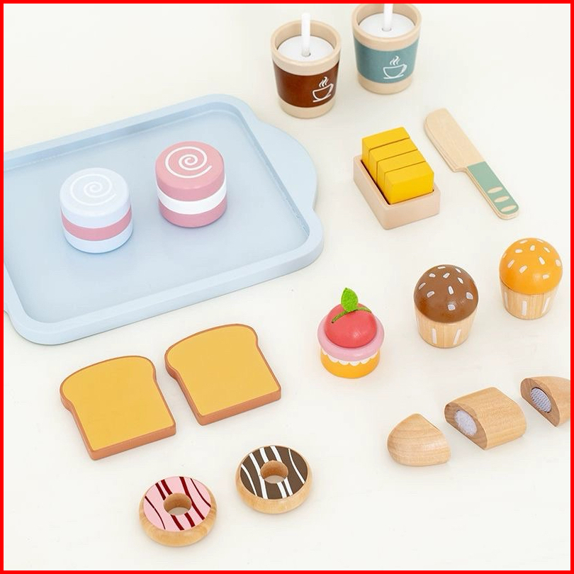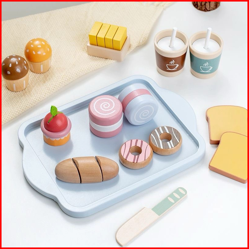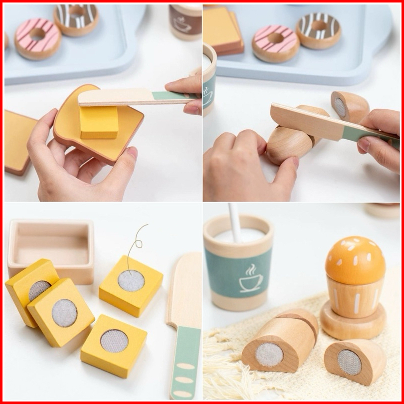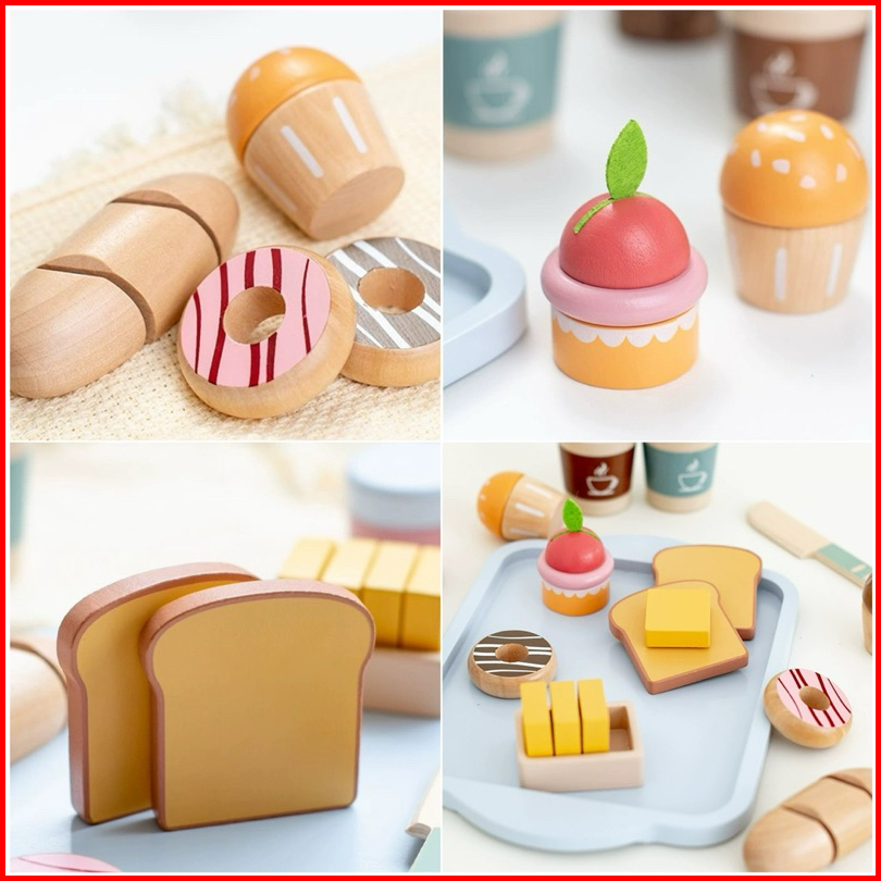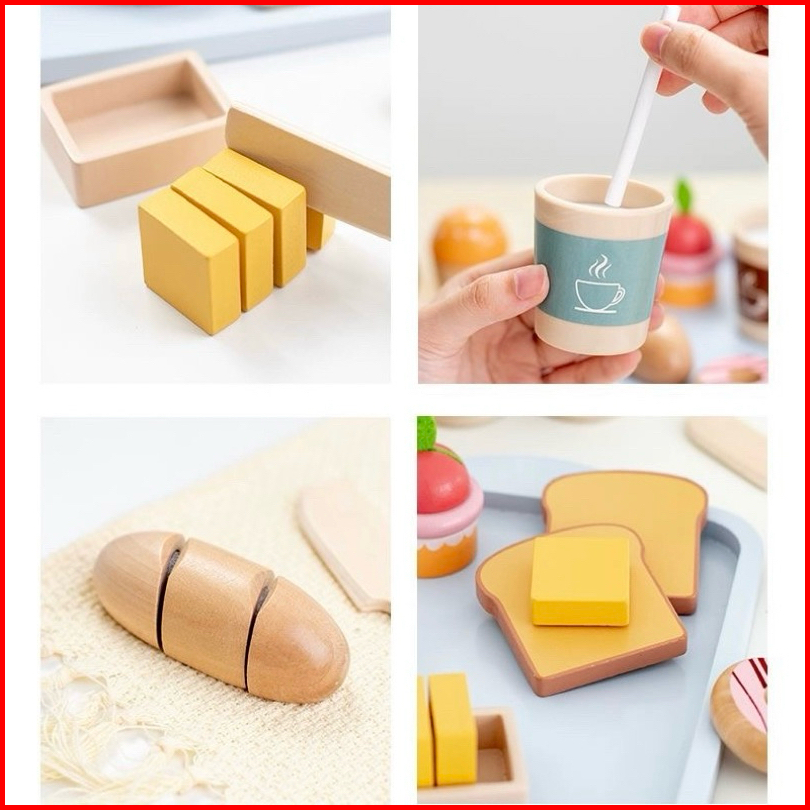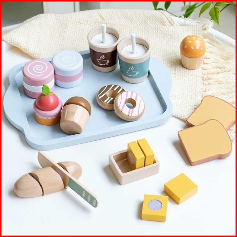 Kabi Wooden Breakfast Set Pretend Plays Mainan Dapur Masak2an Anak Roti Makan Pagi