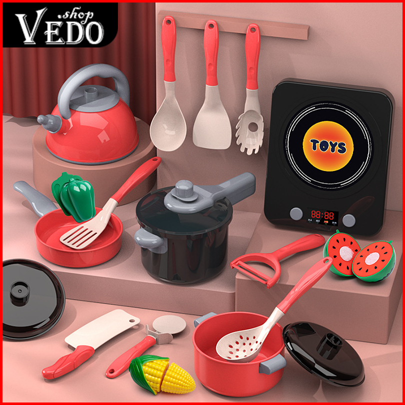 Mainan Masak Masakan Peralatan Dapur Kompor Induksi Mainan Kitchen Set Dapur Lengkap Dengan Buah Sayur Potong