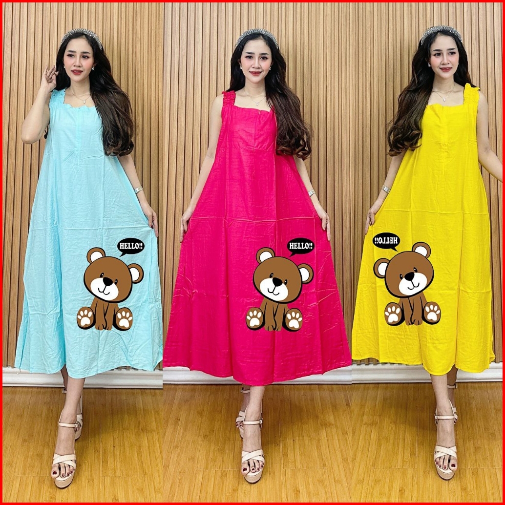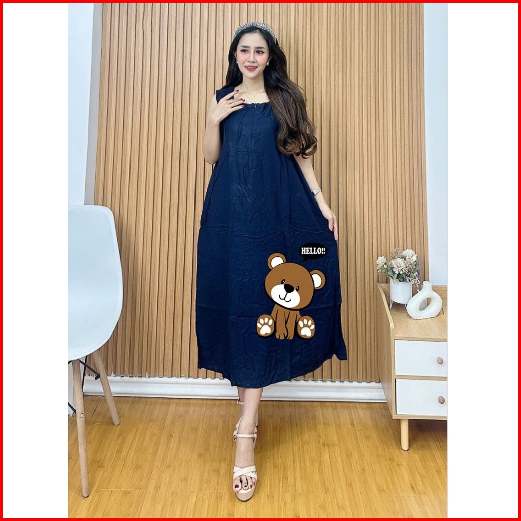 Daster Wanita Terbaru Rayon Busui Resleting Depan Baju Tidur Kekinian Motif Bear