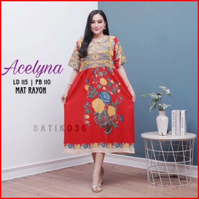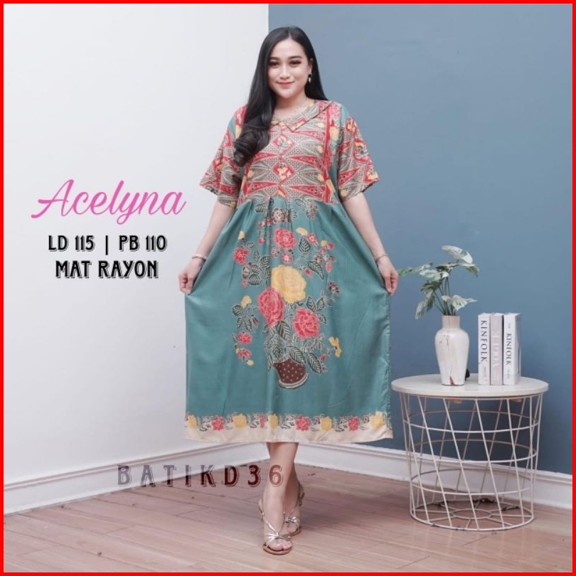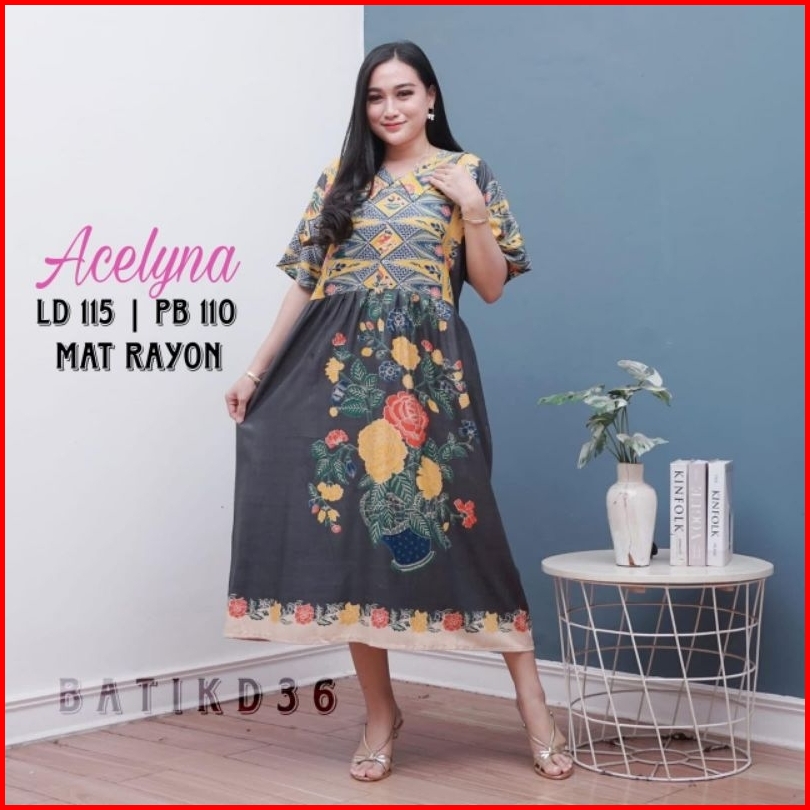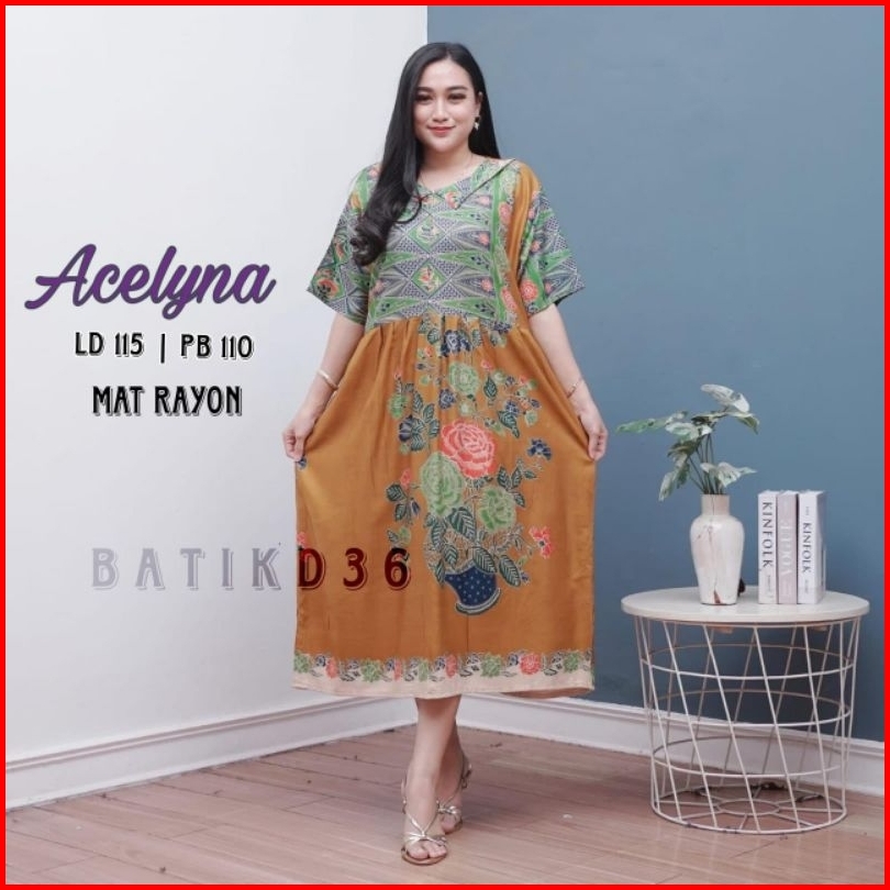 Melva Baju Tidur Daster Busui Acelyna Rayon Premium Krah Lengan Pendek Classic Modern Kekinian Motif Bunga Batik