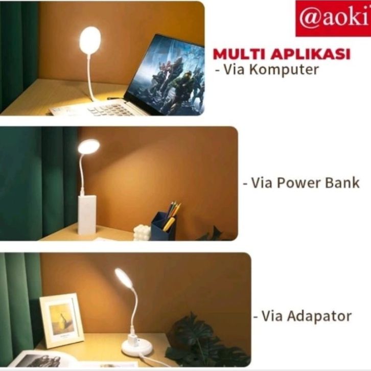 Lampu USB LED Aoki AU 100 / Lampu Belajar LED Fleksibel / Lampu Belajar USB / Lampu Baca Aoki abedr