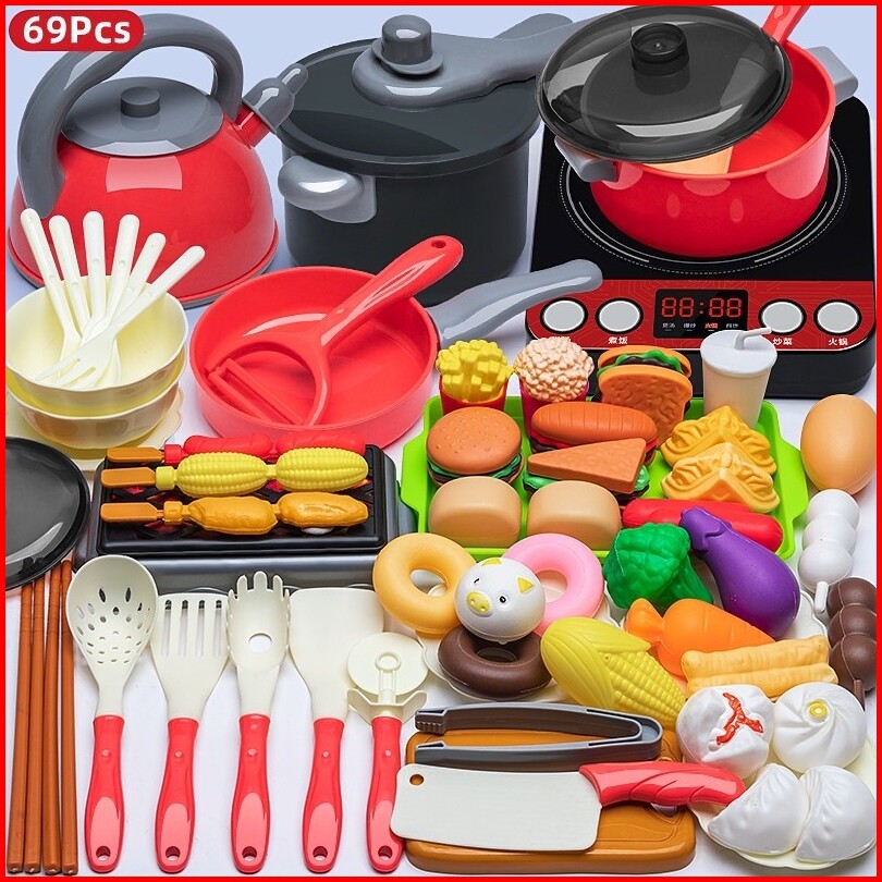 Duffy Toys 86pcs Mainan Buah Potong Dapur Mainan Home Kitchen Playset Anak Masak Masakan Mainan Kitchen Set Potong Buah