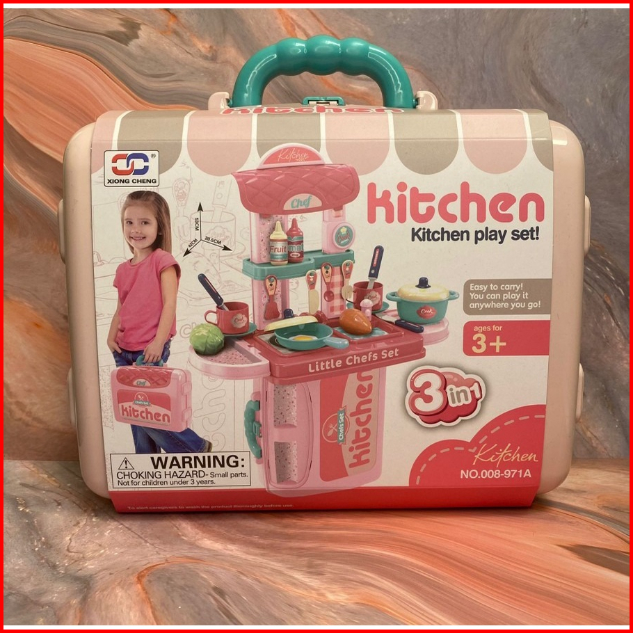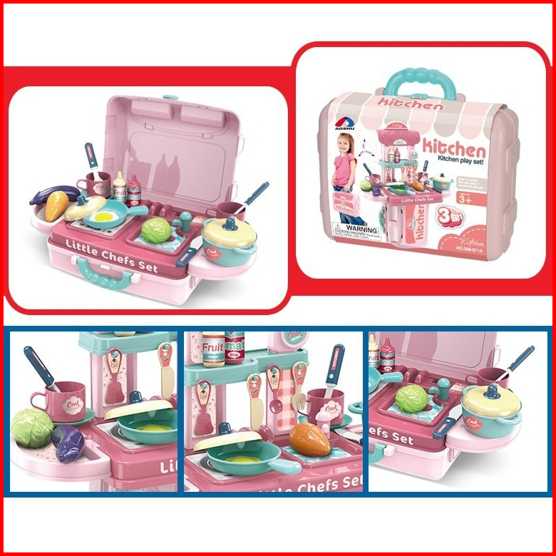 Mainan Edukasi Anak - Kitchen Play Set 3in1 Koper Chef Mainan 008-971