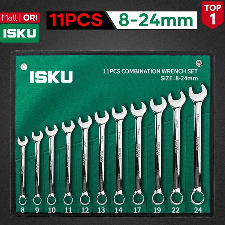 ISKU Kunci Ring Pas Set 11pcs 8-24mm Bahan Crv Kombinasi Wrench set 8-24mm 11 Pcs Kunci Pas