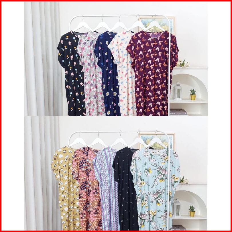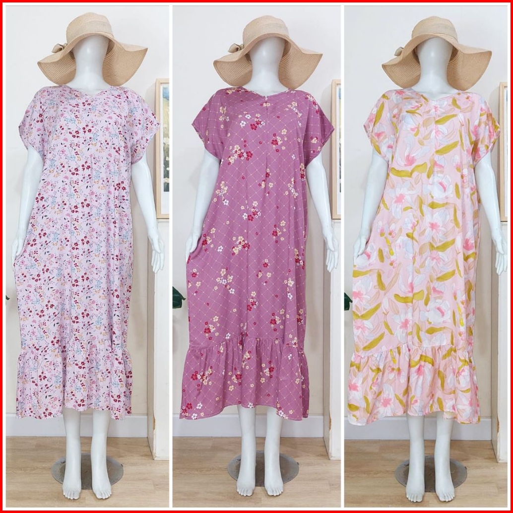 Daster Busui Panjang Sematakaki Homedress Busui Ld 125 Pb 125-130 Bahan Rayon Premium Resleting Depan