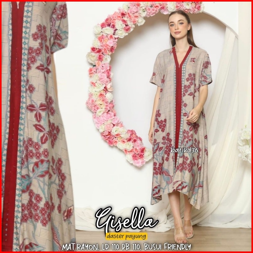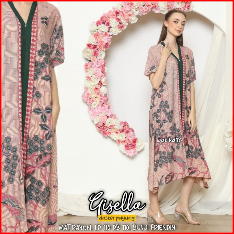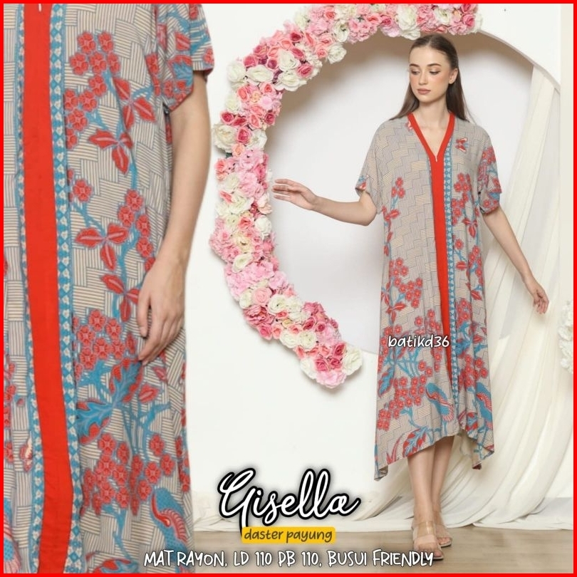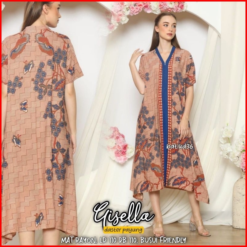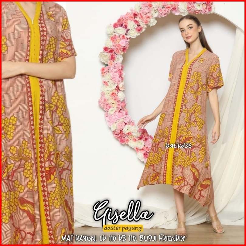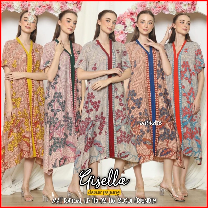 Jessa Baju Tidur Daster Payung Busui Gisella Rayon Premium Motif Zig-zag Bunga Daun Tulip Modern Bahan Rayon Halus