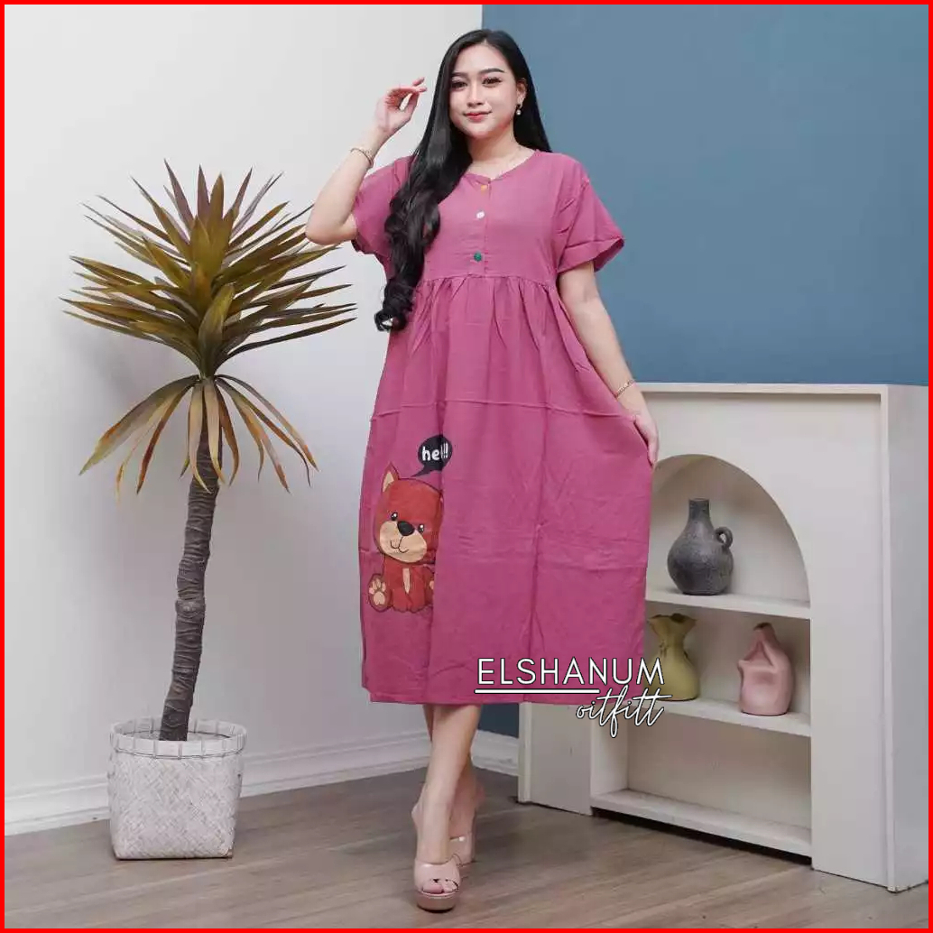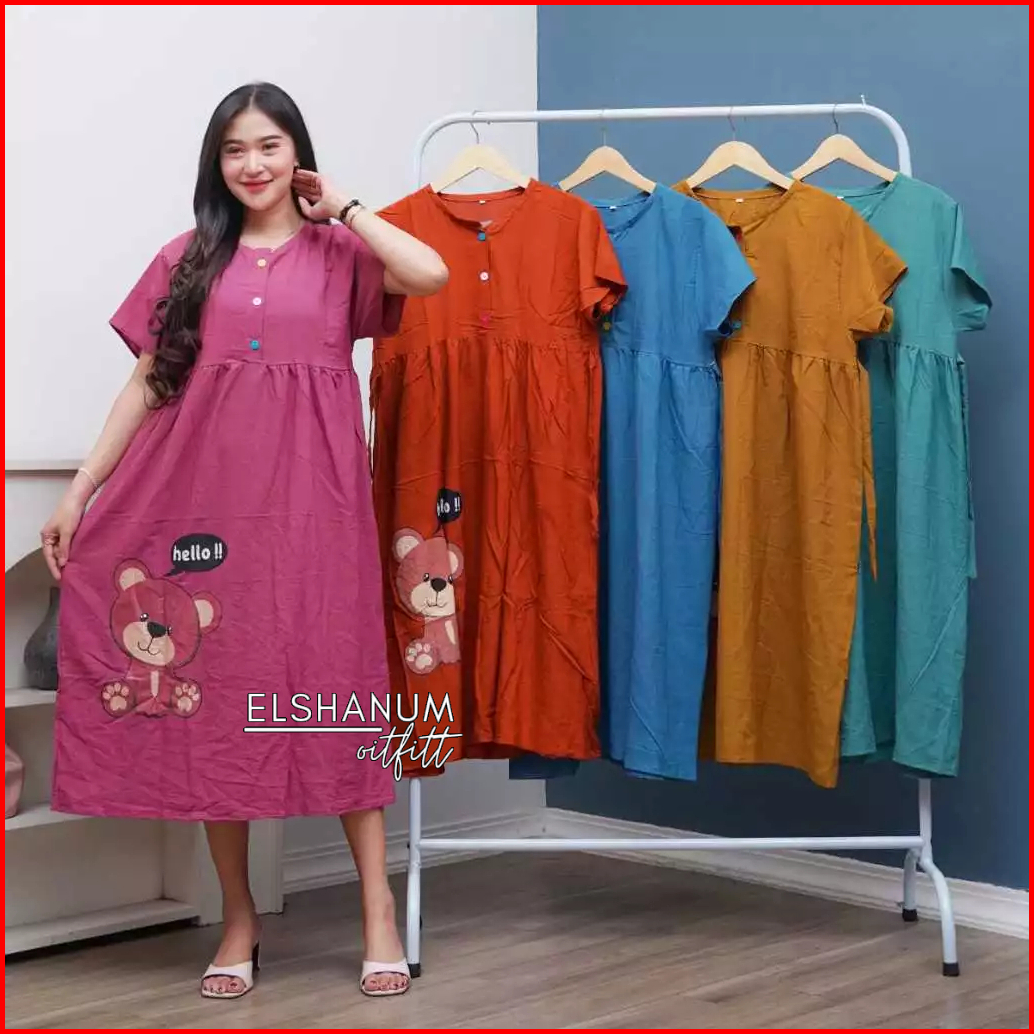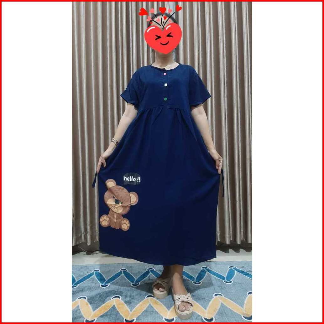 Daster Rayon Bear Busui Premium Dress Wanita Bumil Ld 110 Jumbo Kekinian