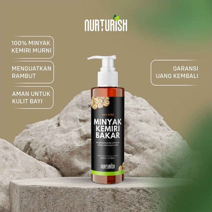 NURTURISH - Minyak Kemiri Bakar 100ml Murni Alami Penumbuh & Penebal Rambut Bayi & Dewasa Brewok Kumis Jambang Janggut A