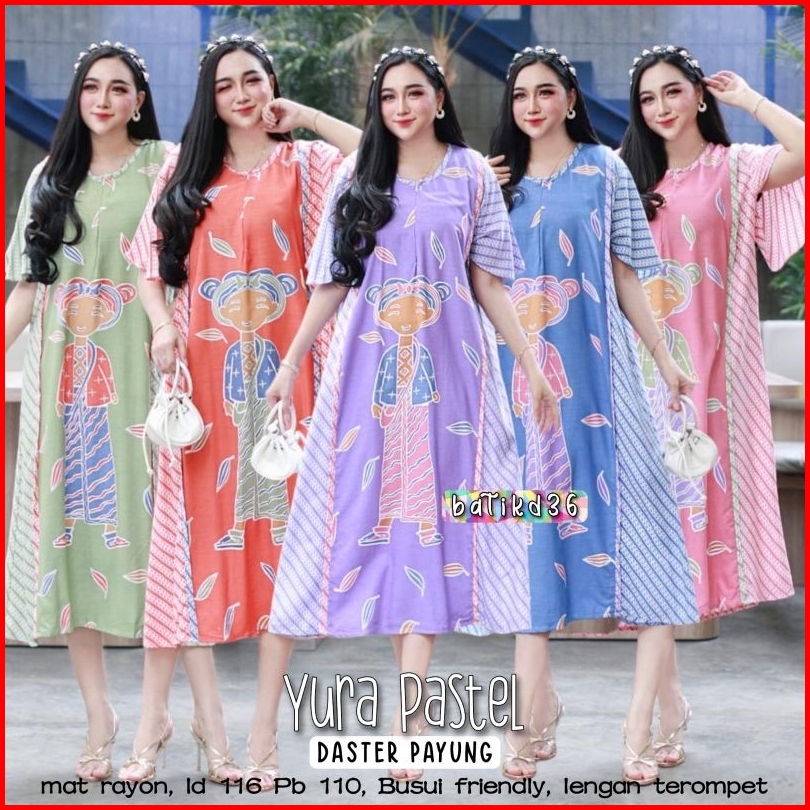 Jessa Ld 120 Baju Tidur Daster Busui Rayon Premium Tejo Yura Soft Pastel Lengan Terompet Pendek Midi Dress Wanita Bahan