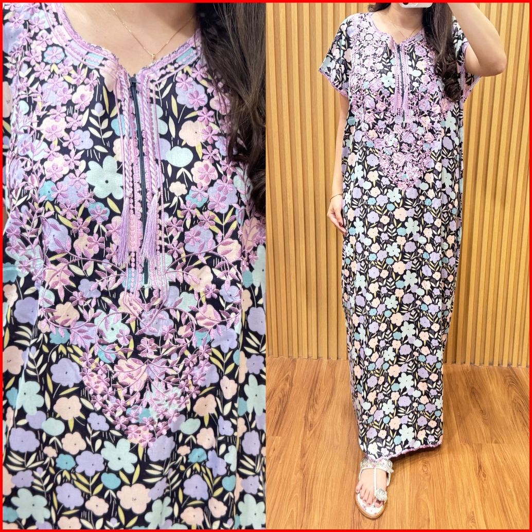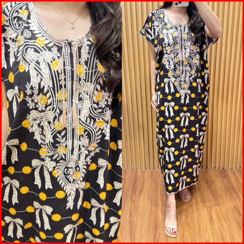Daster Bordir Rayon Bunga-bunga Busui Friendly