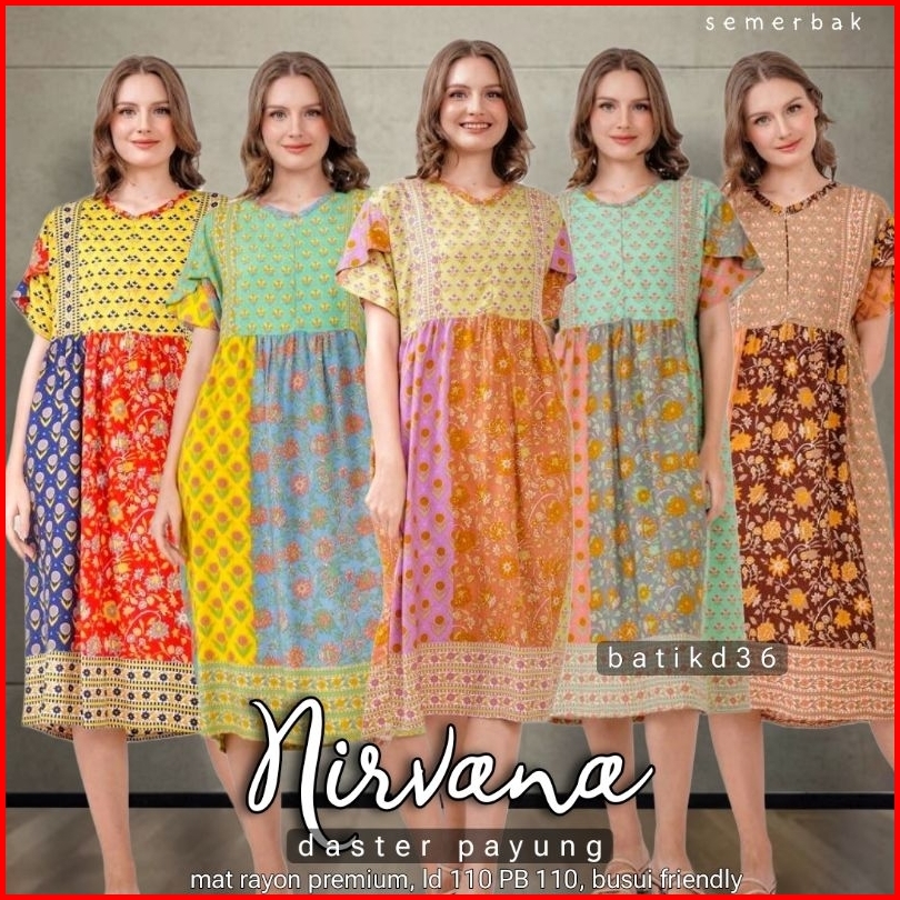 Semerbak Batik Daster Payung Klok Nirvana Baju Tidur Wanita Rit Depan Busui Daster Kupu Lengan Pendek Terbaru Kekinian L