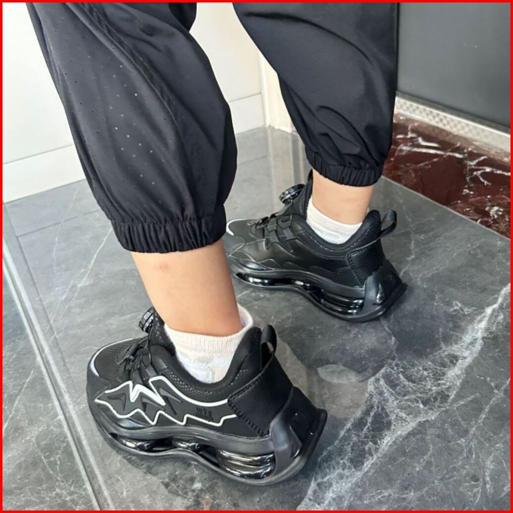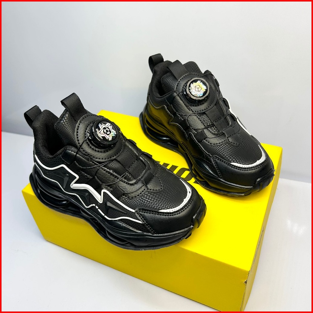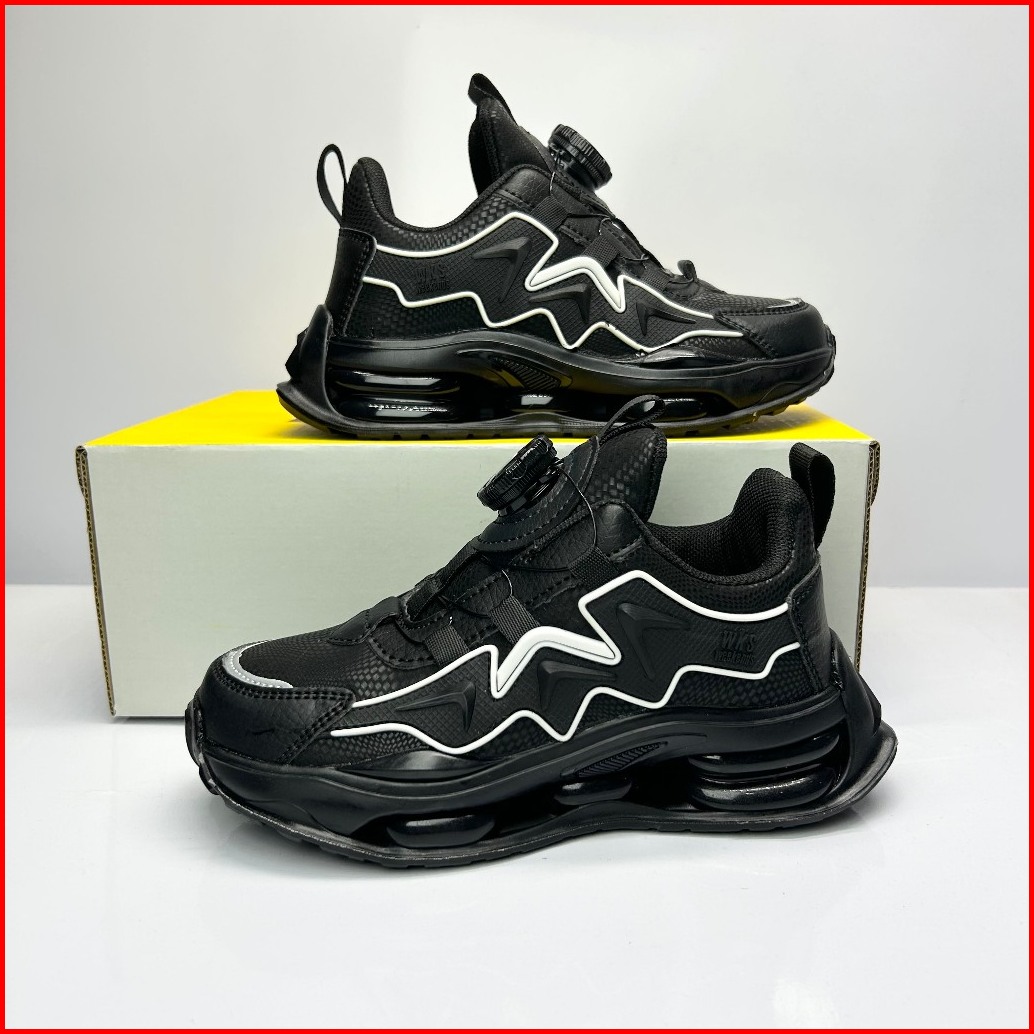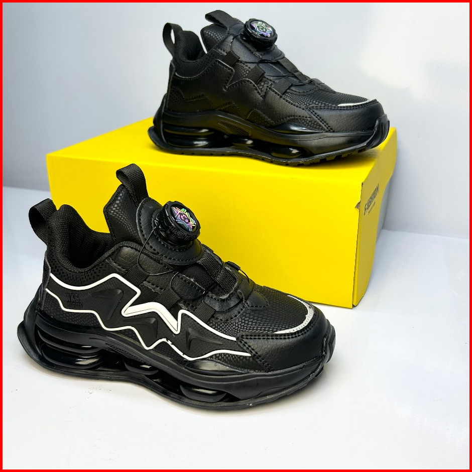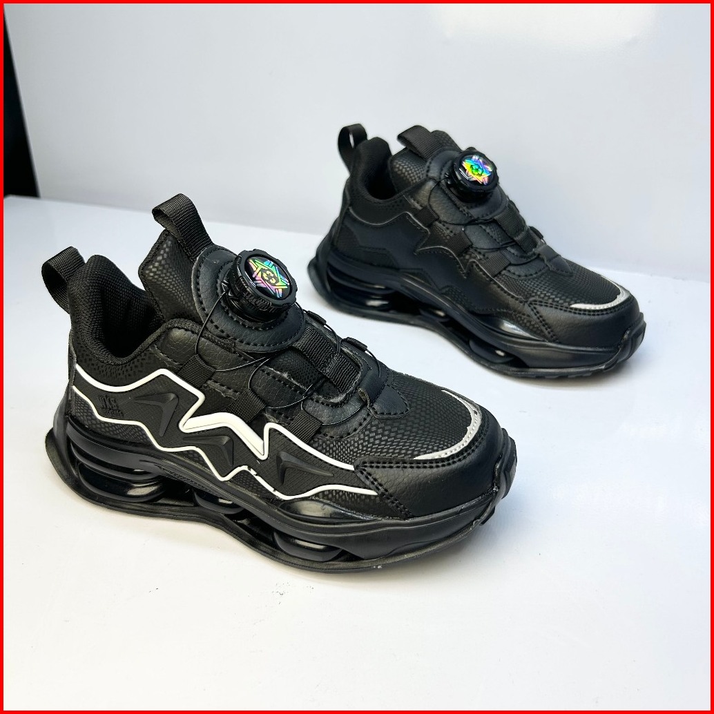 Sepatu Hitam Sekolah Sepatu Anak Laki-laki Casual Sneakers Ringan Tombol Putar Mesh Running Shoes