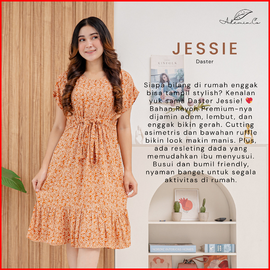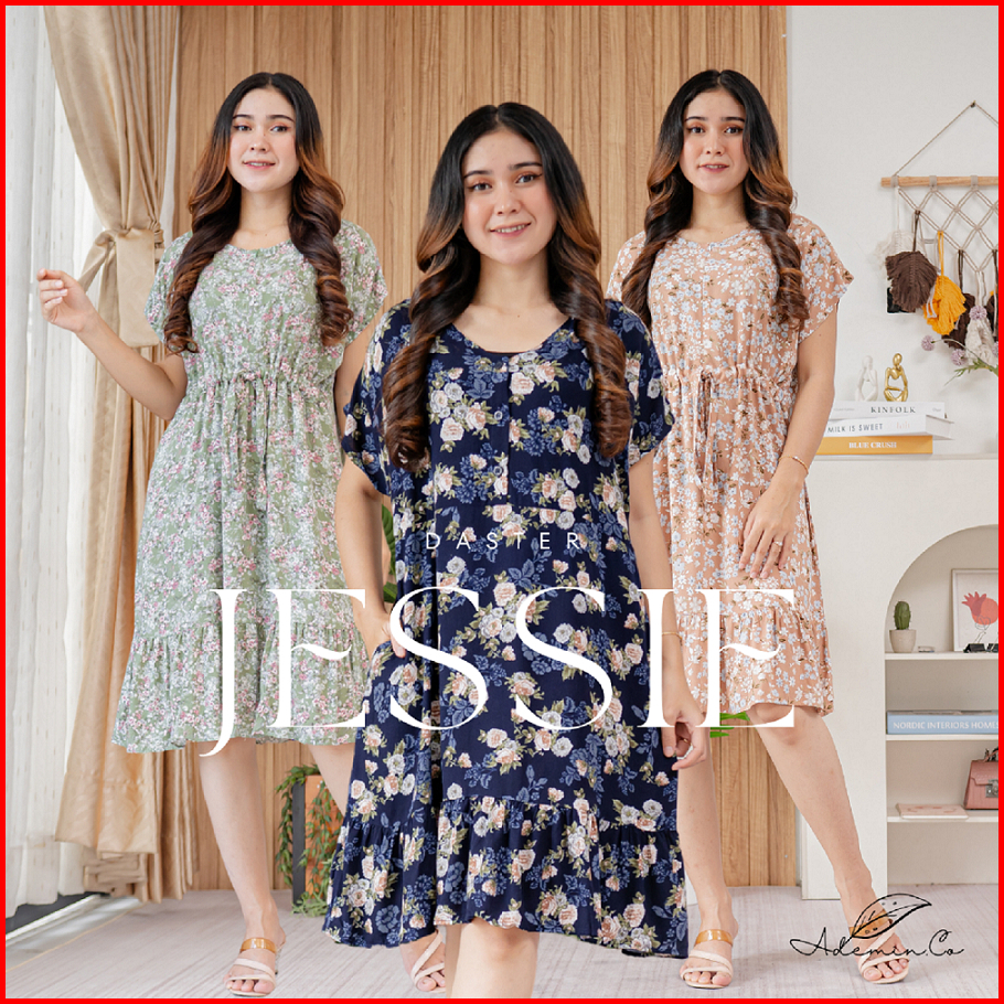 Ademinco Jessie Daster Serut Ruffle Rayon Reactive Daster Kekinian Adem Busui Bumil Friendly