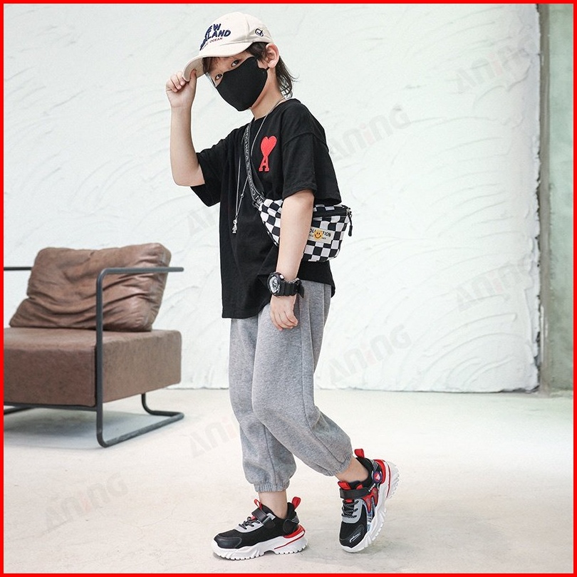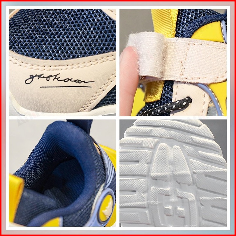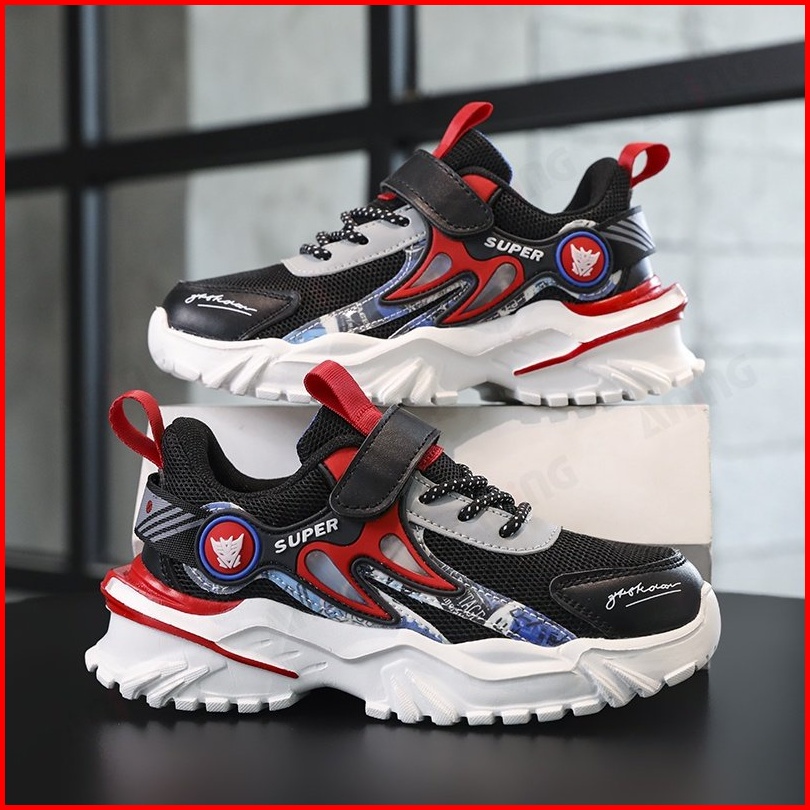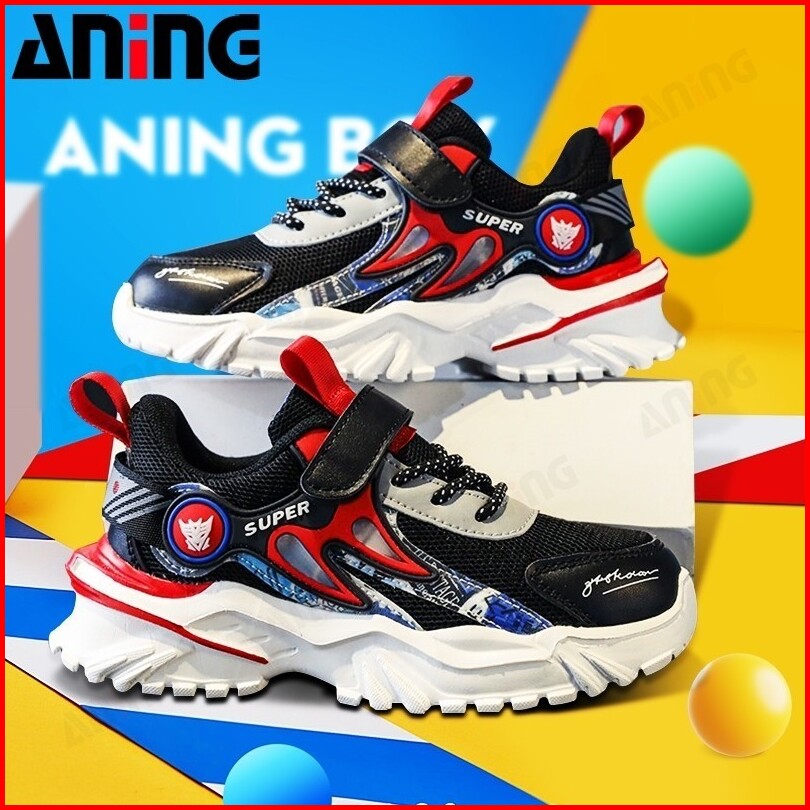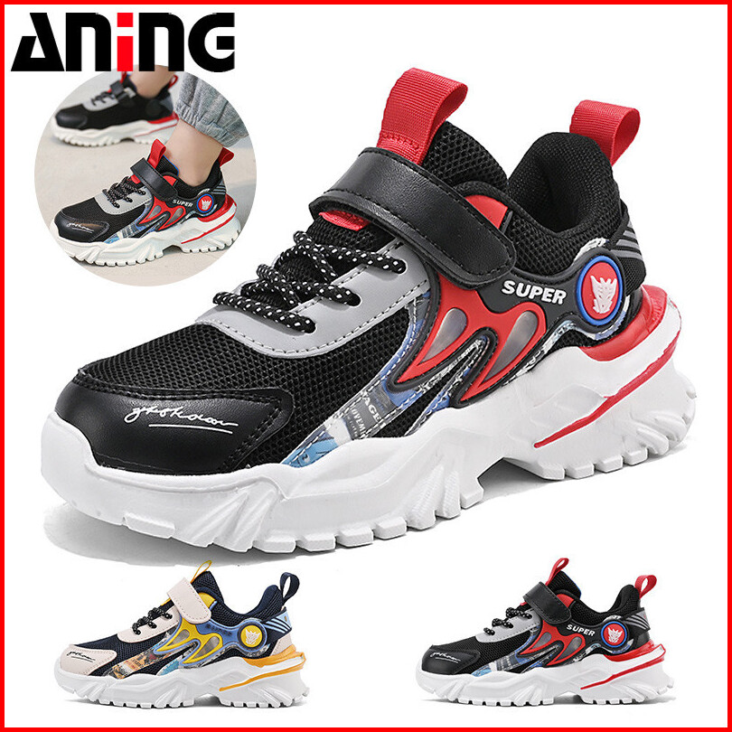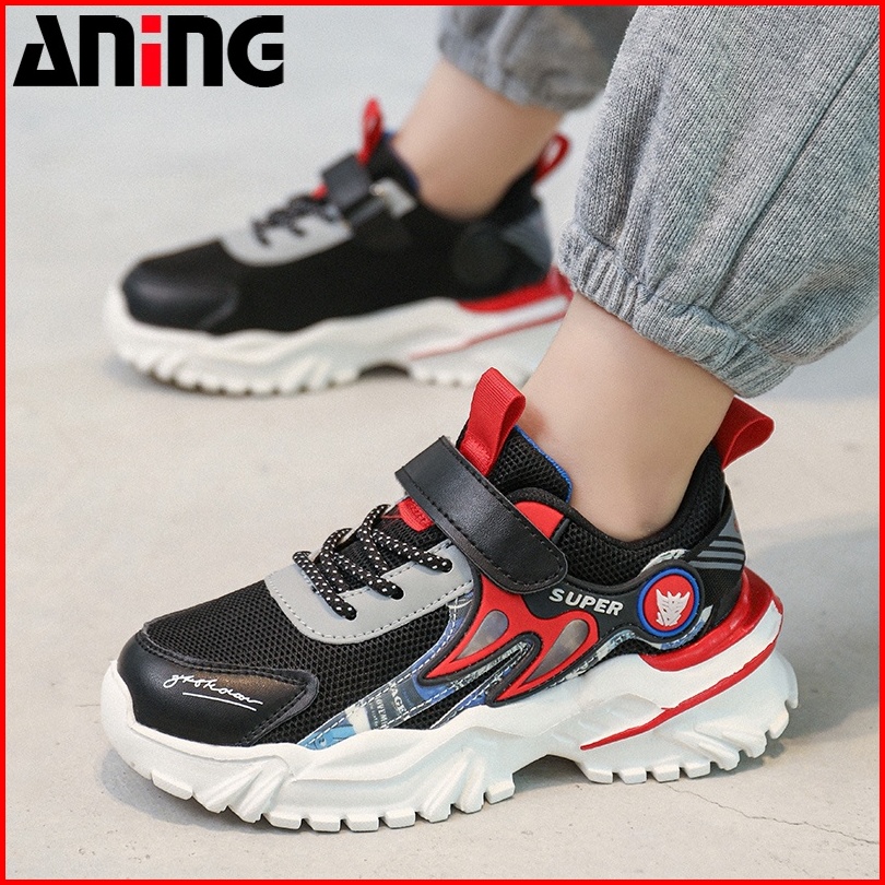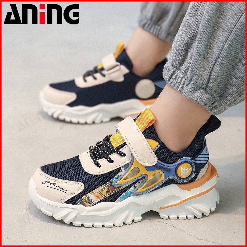 Aning Aningboy- Bernapas Fashion Anak Laki-laki Sepatu Kets Mesh Sepatu Kasual Tide Velcro Sepatu Lari