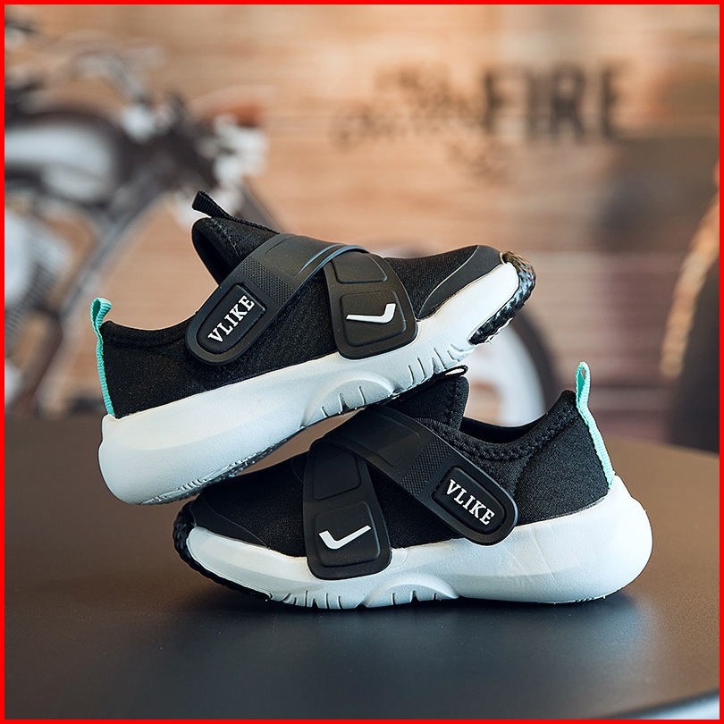 Hnk Sepatu Sneaker Slip On Anak Ringan Laki Laki Perempuan Slip On Vlike Flex Black