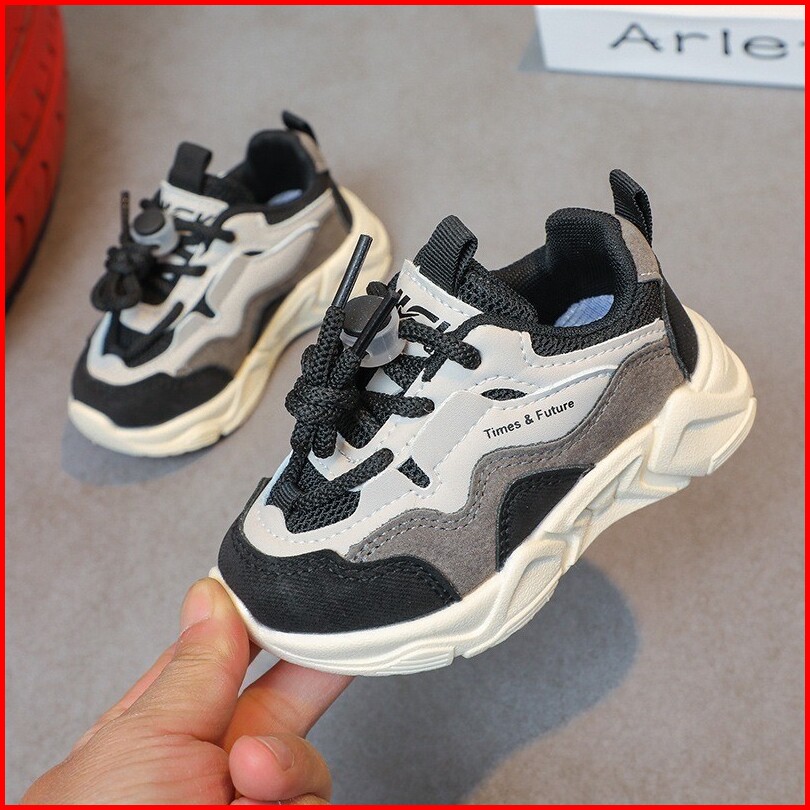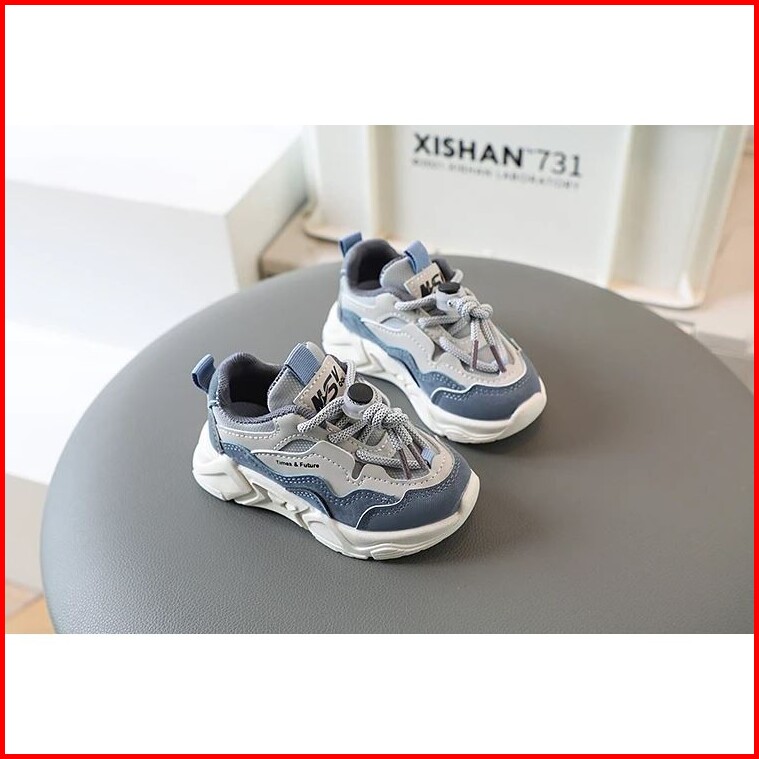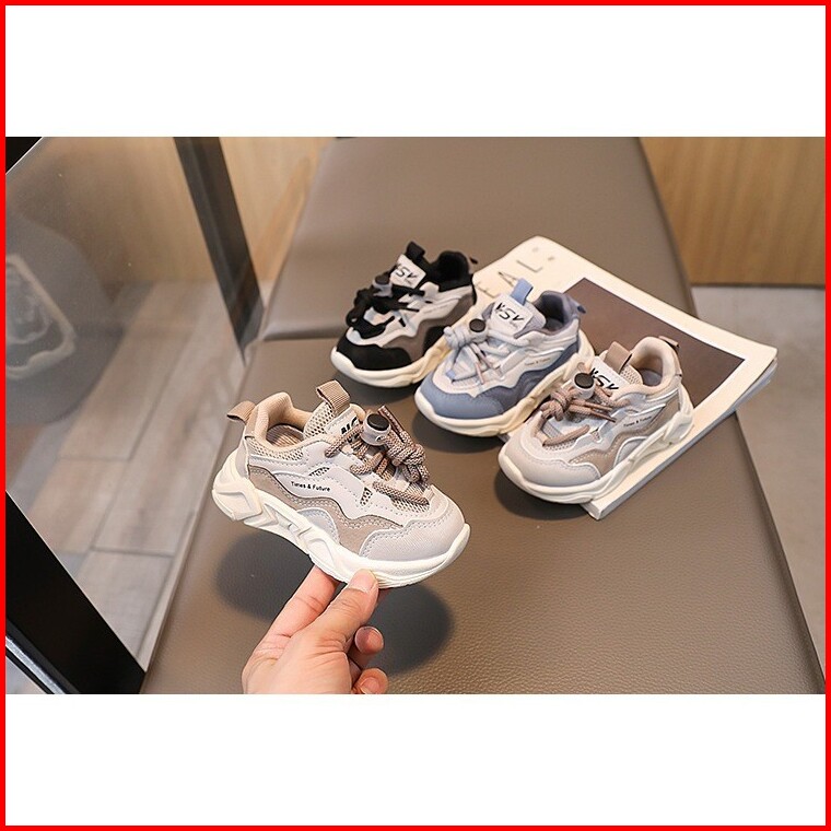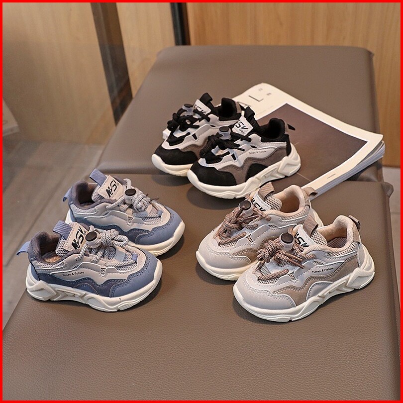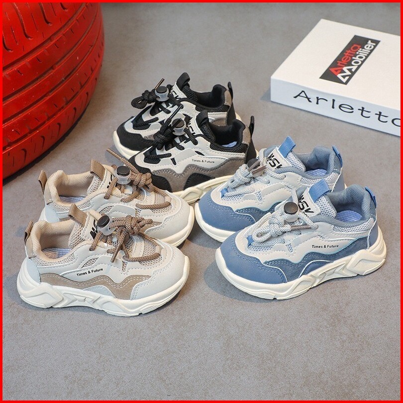 Sepatu Sneakers Karet Anak Laki Perempuan Sneaker Kets Kulit Casual Anak Cowok Cewek Biru Coklat Hitam