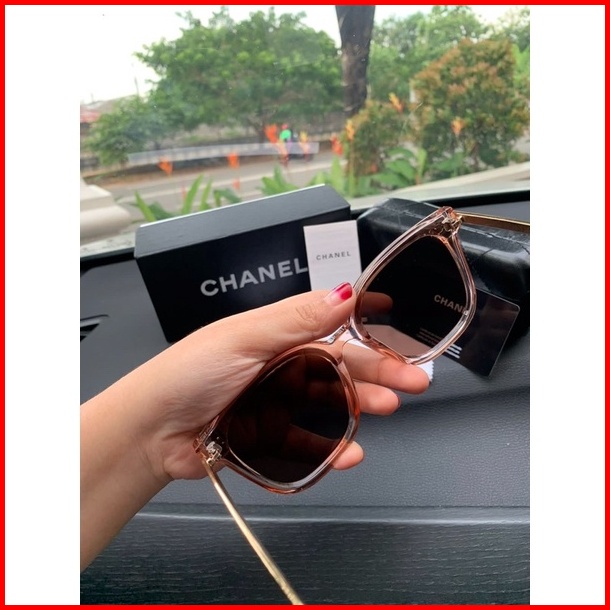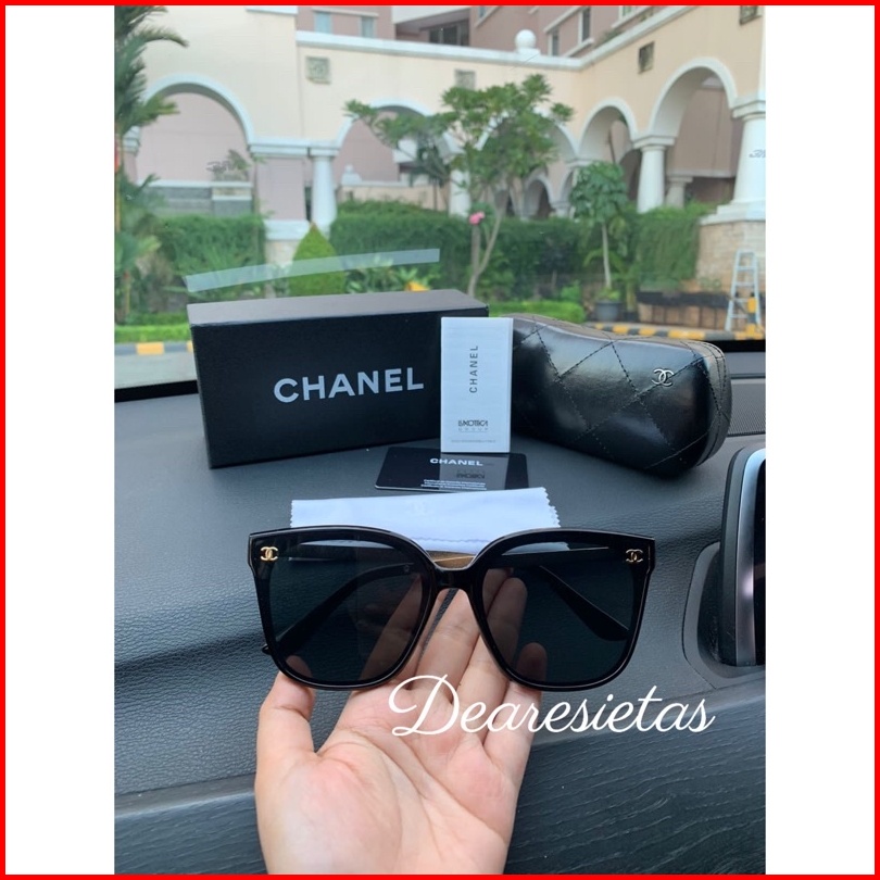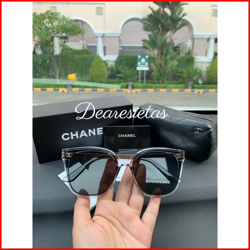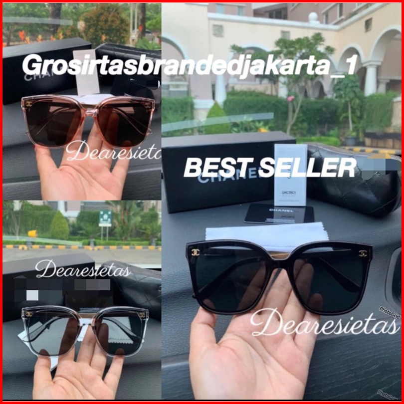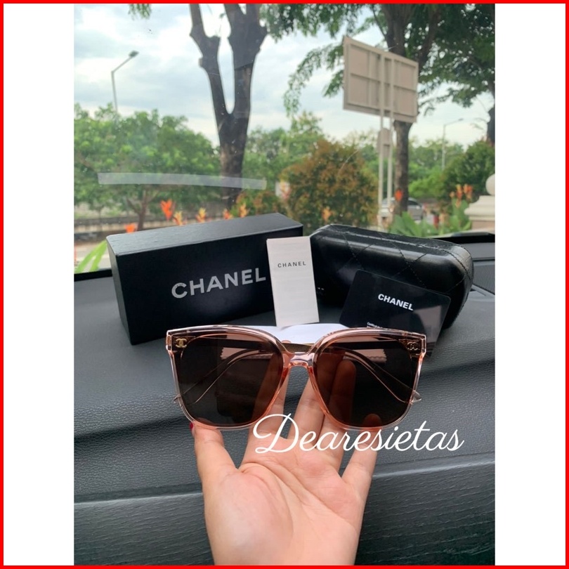 Sunglass Kacamata Wanita Frame Lensa Hitam Pink Abu Bening Fullset Box