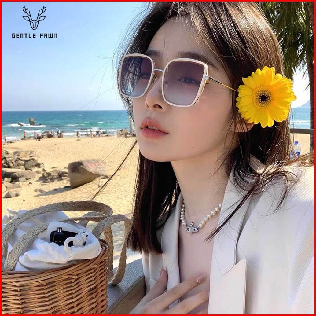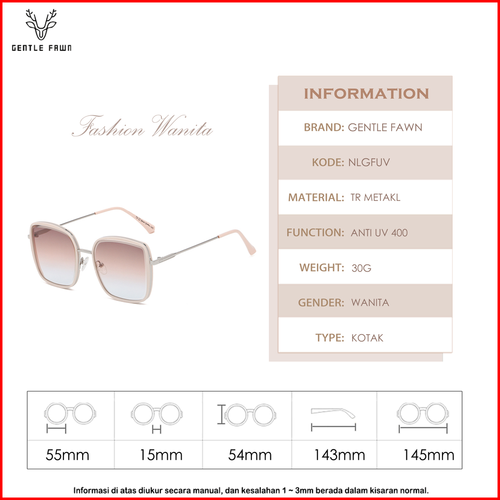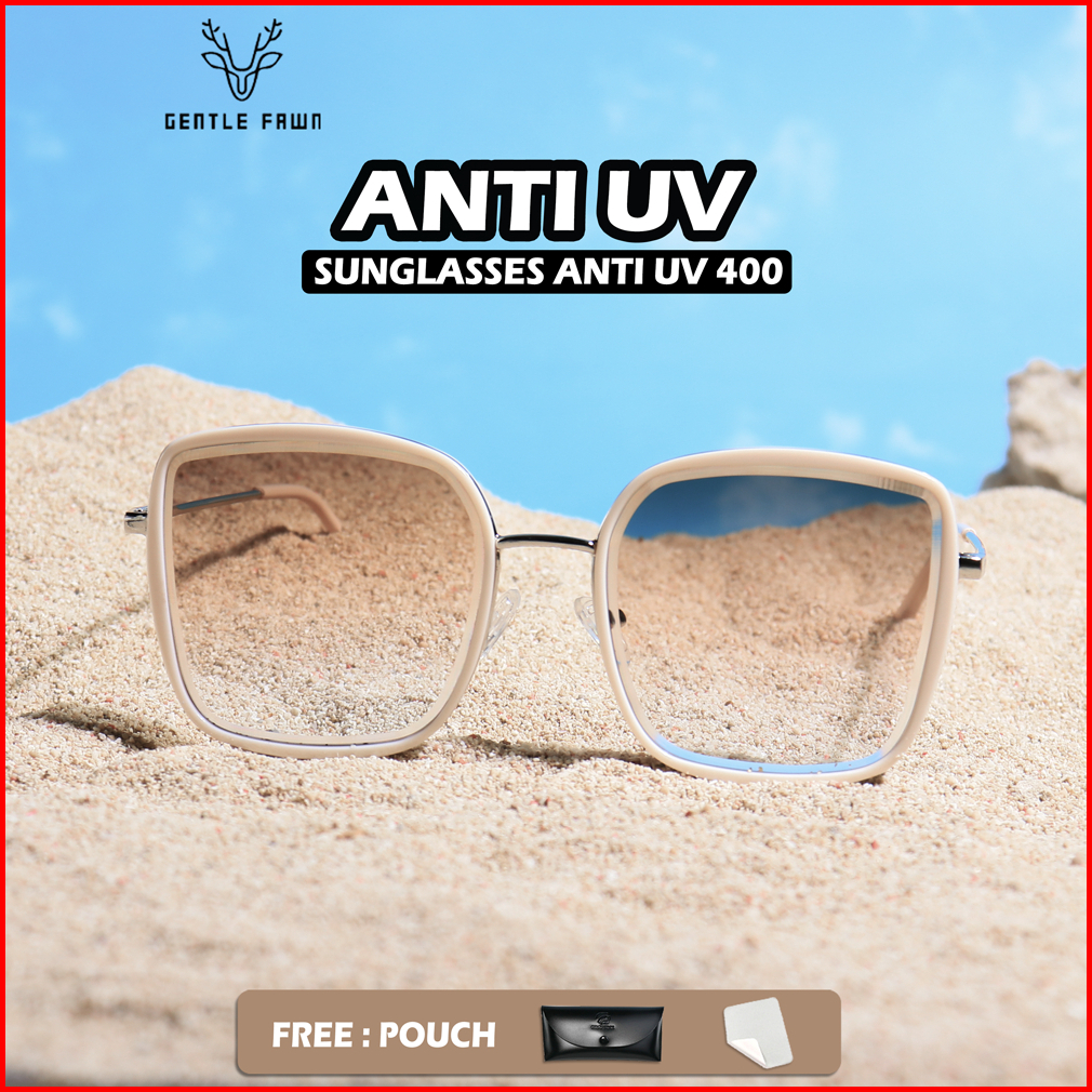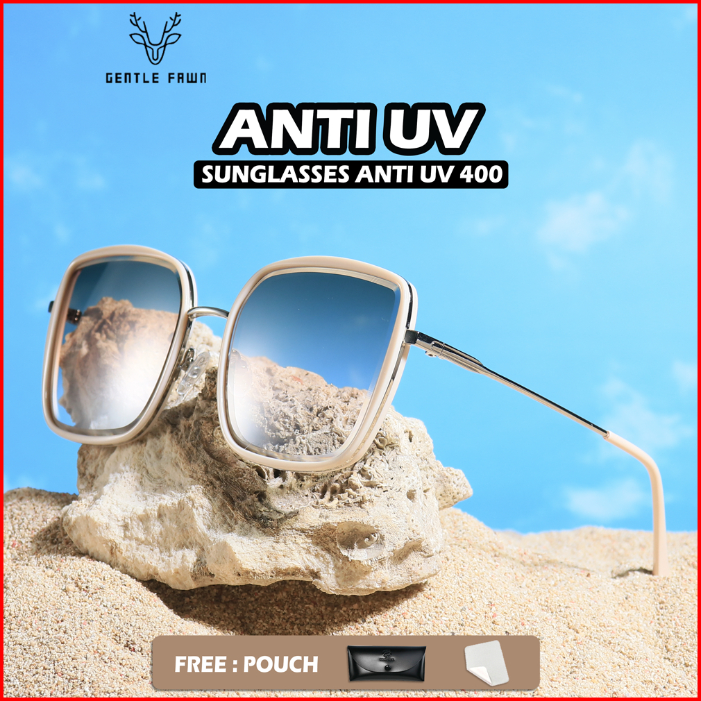 Gentle Fawn Kacamata Sunglasses Anti Uv Silau Fashion Wanita Simple Oversized Bentuk Kotak Bahan Metal 23022