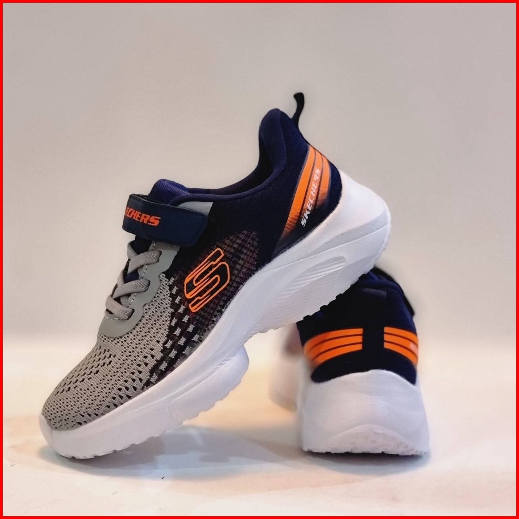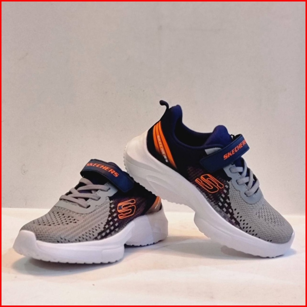 Sepatu Anak Laki-laki Skechers Premium Abu Orange Hitam