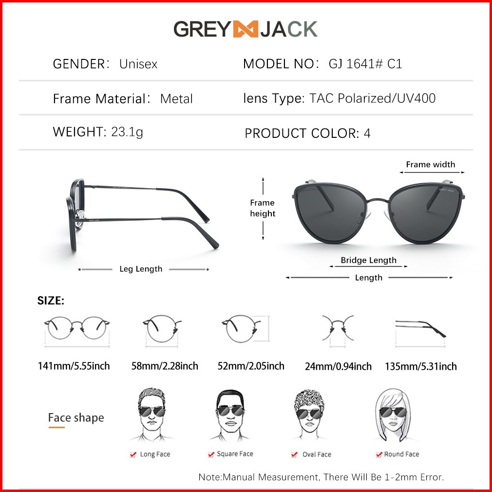 Grey Jack Kacamata Sunglasses Polarized Anti Uv400 Anti Silau Style Cat Eye Modern Fashion Wanita Modis Terbaru 1641