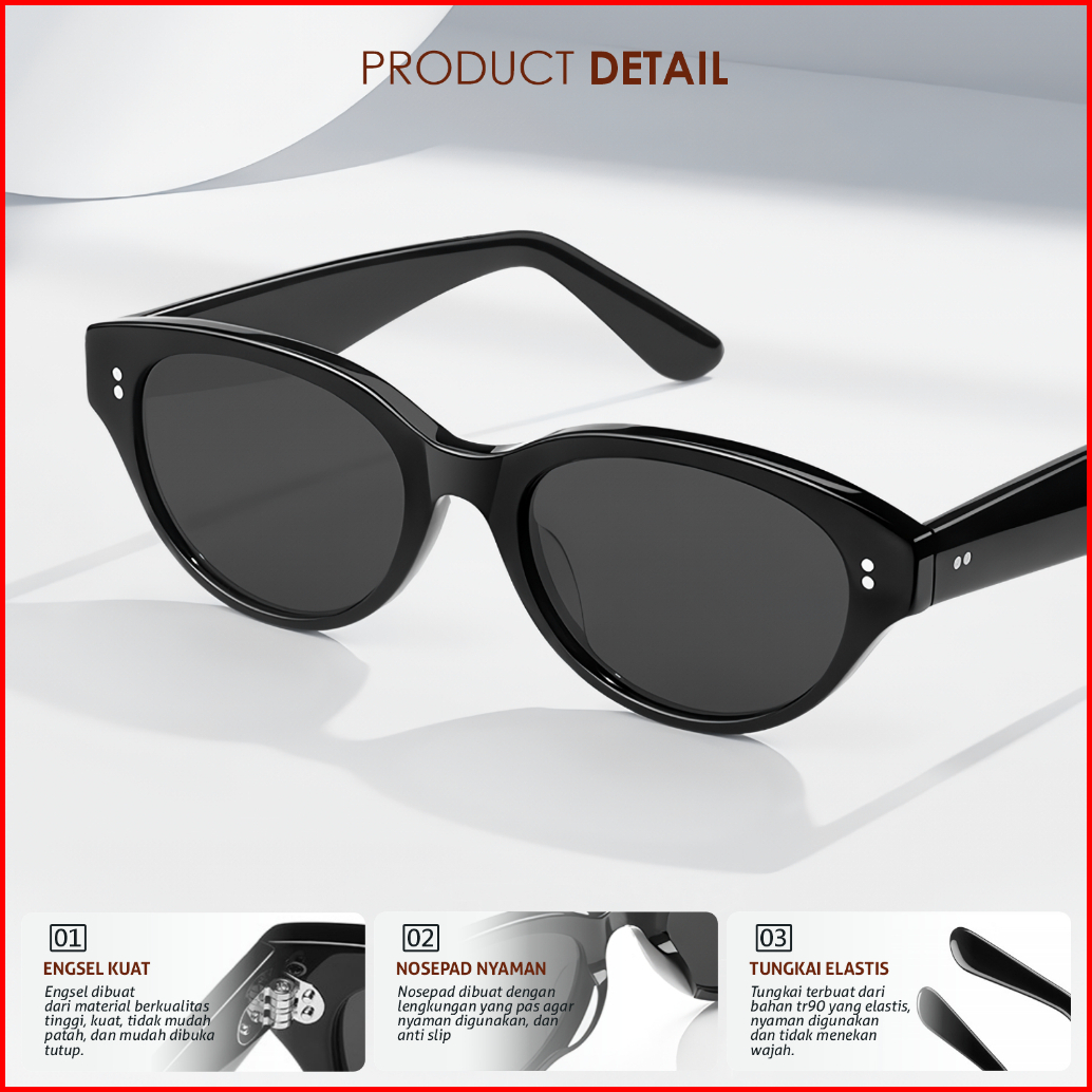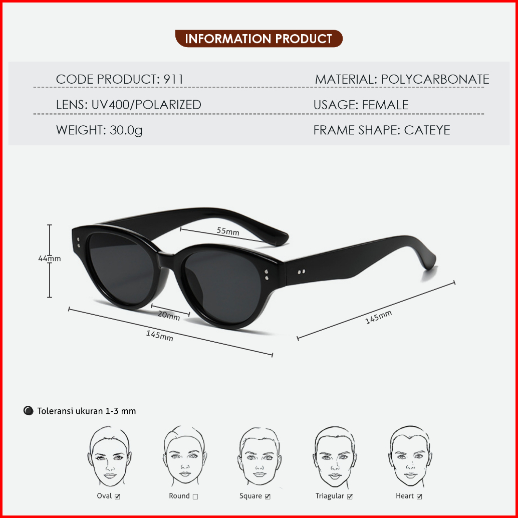Colore.in Kacamata Hitam Cat Eye Sunglasses Korea Terbaru Pria Wanita Unisex Tr-90 Fashionable Polarized Uv400 911