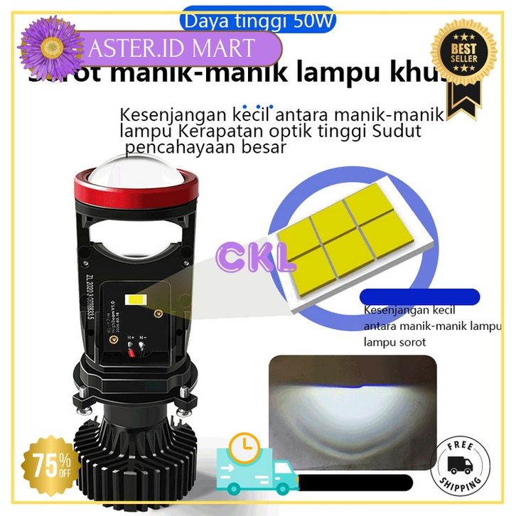 Lampu Led Mobil Dan Motor H4 Mini PJECTOR PROJIE Y7D SUPER BRIGHT 50 Watt/Dengan kipas angin