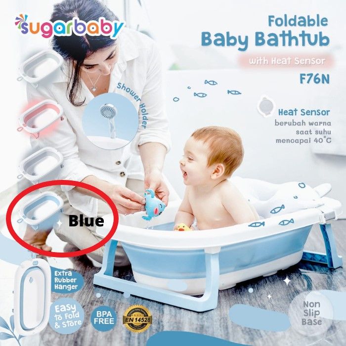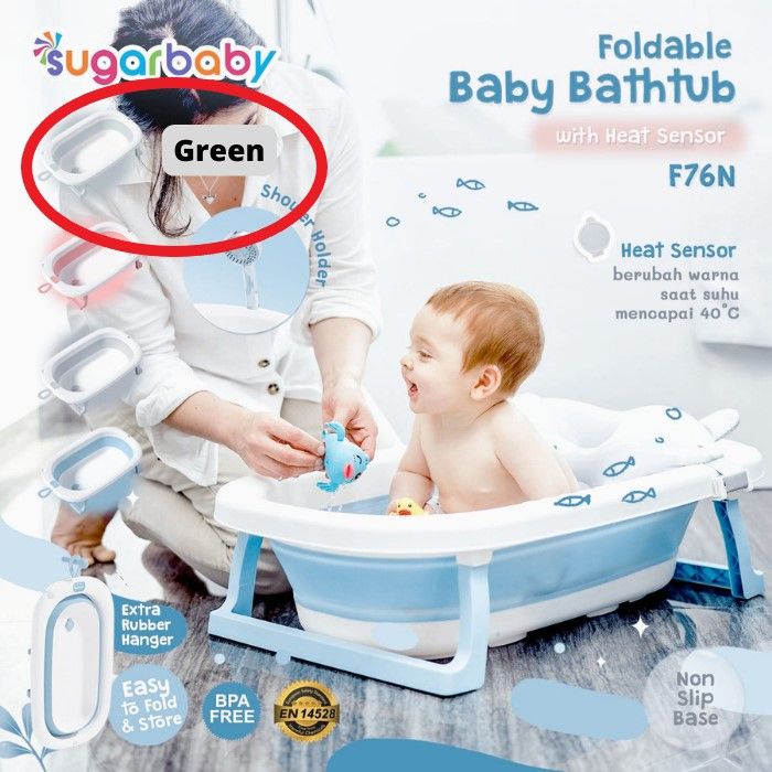 Grastis ongir Sugar Baby Foldable Baby Bathtup with Digital Thermometer F76/F79/F88/F76N Bath Pillow Bak Mandi Lipat