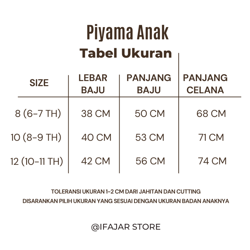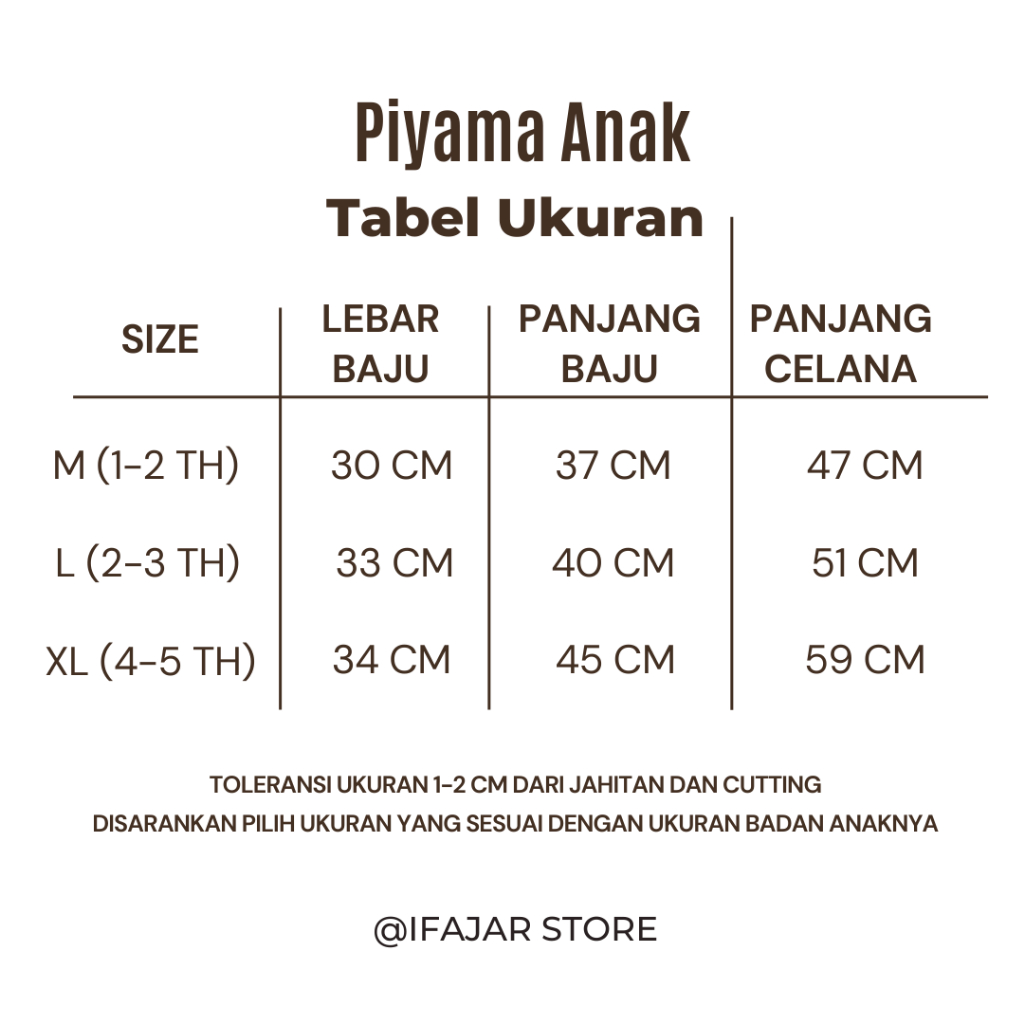 Size M (1-2 Tahun), Size L (2-3 Tahun), Size XL (3-4 Tahun), Size 4 (4 Tahun), Size 5 (5 Tahun), Size 6 (6 Tahun), Size 8 (7-8 Tahun), Size 10 (8-9 Tahun), Size 12 (10-11 TH)