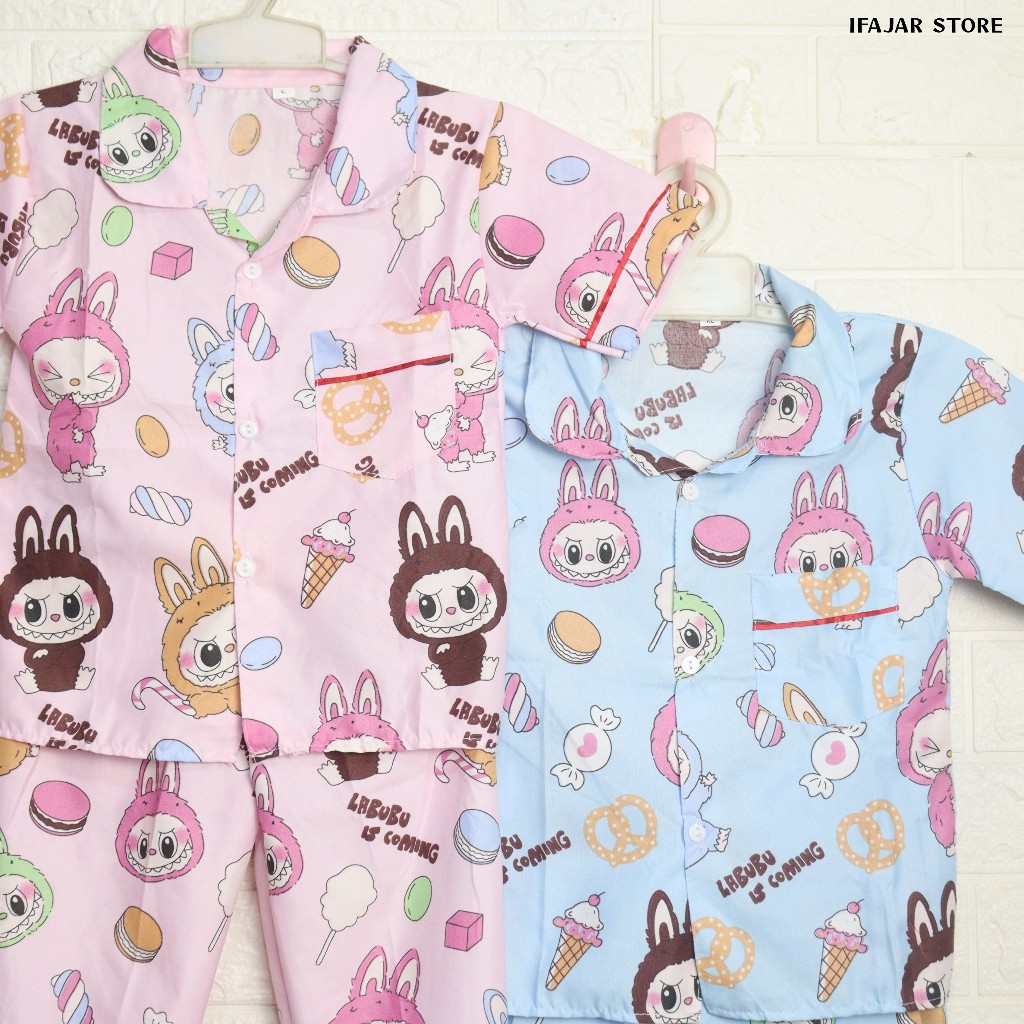 BAJU TIDUR PIYAMA ANAK MOTIF "LABUBU" KATUN POLYMICRO (USIA 1-11 TH)