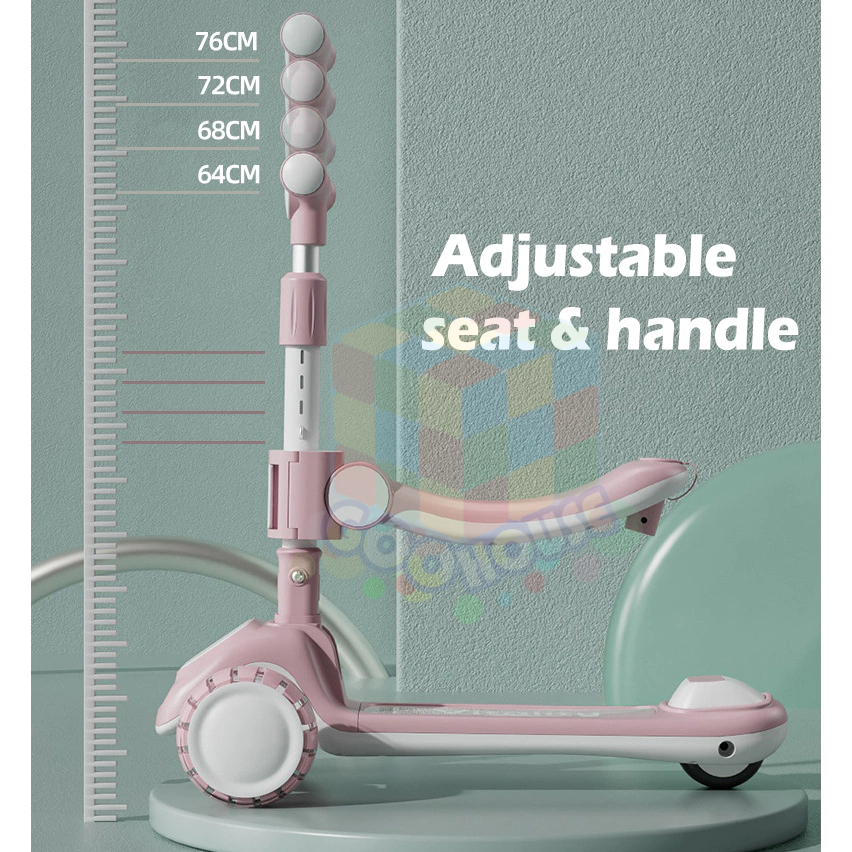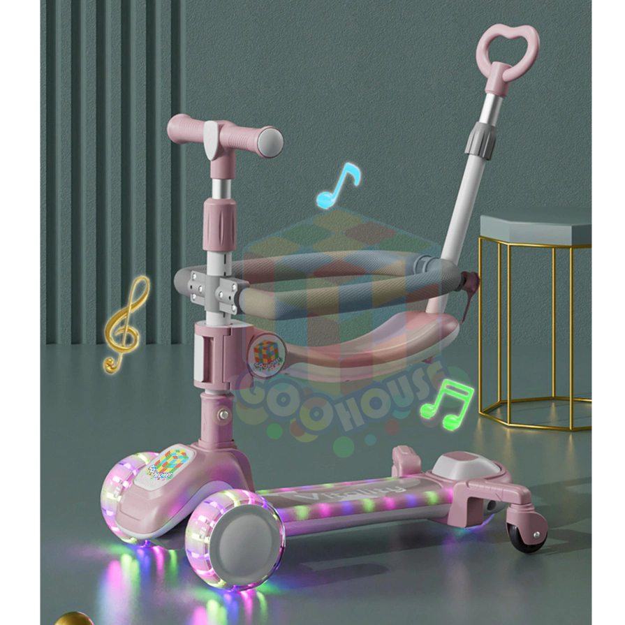 6 in 1 Skuter Anak Kids Scooter Skuter Lipat 0-12 tahun Skuter Musik Bangku Lampu skuter anak roda 3