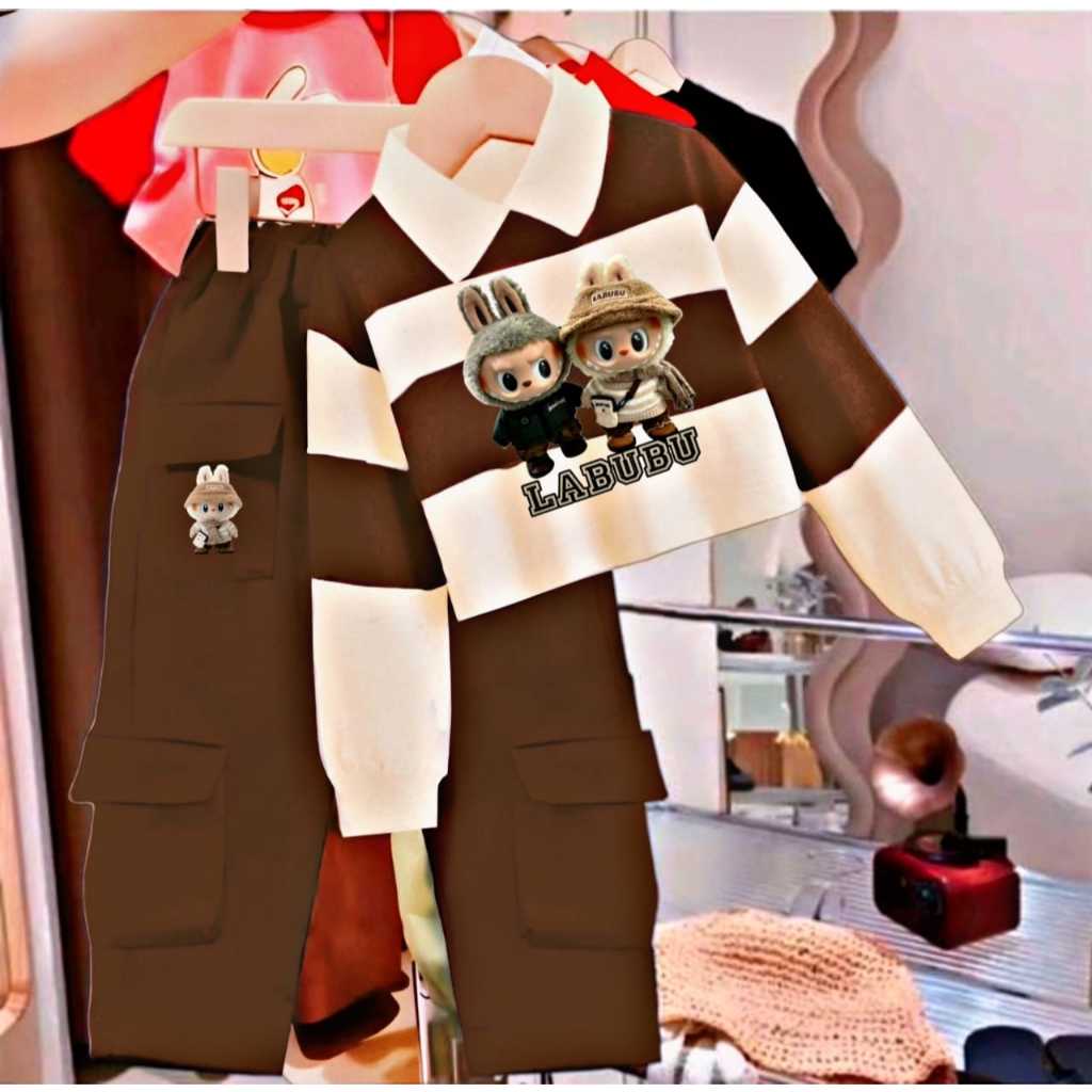 SETELAN STRIPE LABUBU ANAK 1-12 THN /ONE SET ANAK CEWEK TERBARU MODEL KARGO