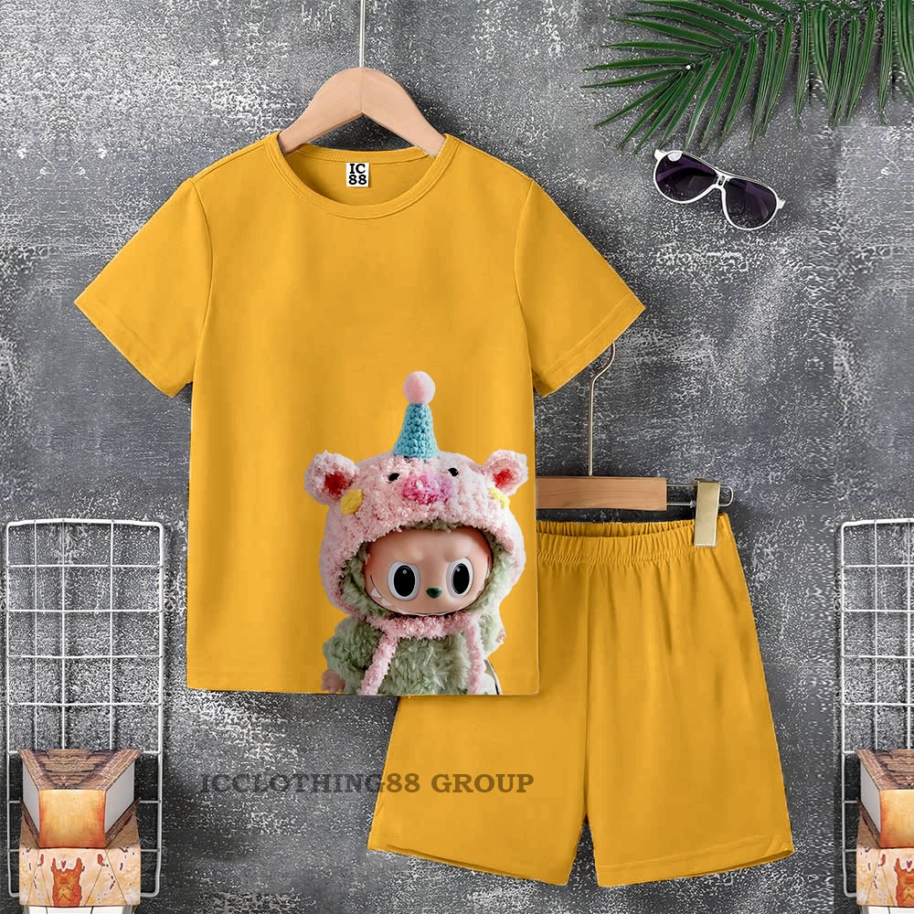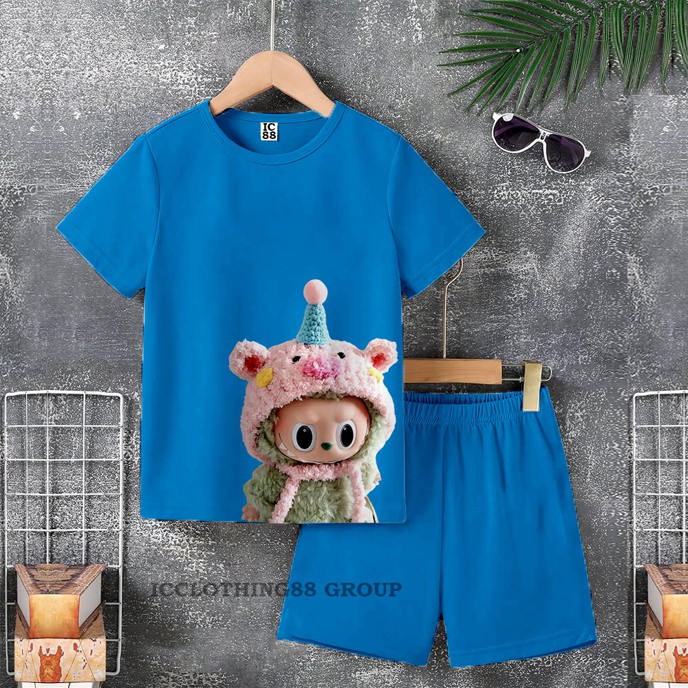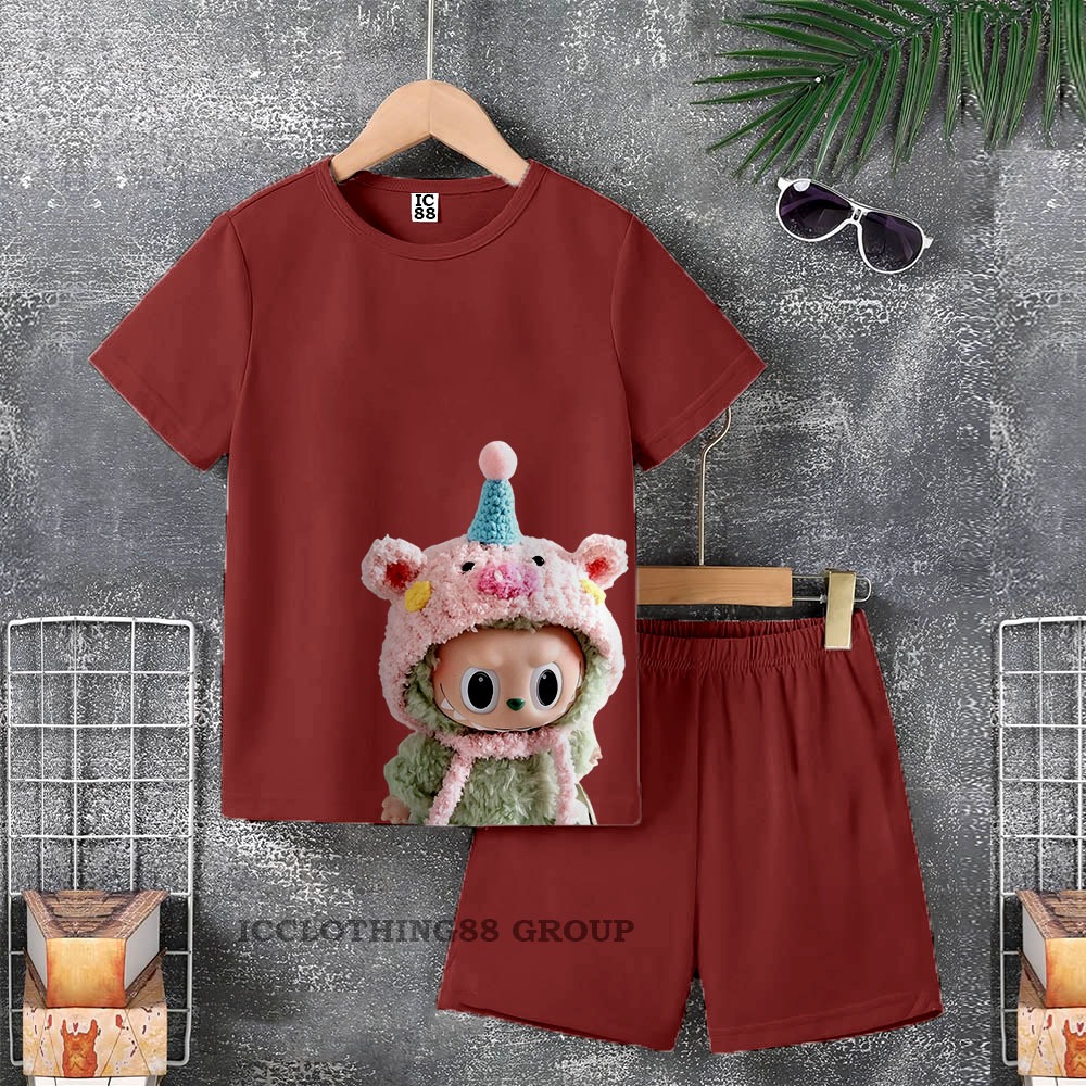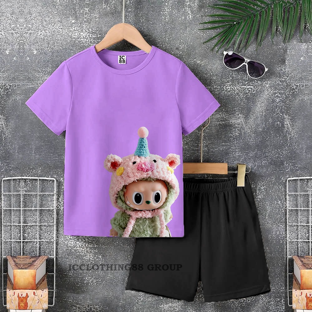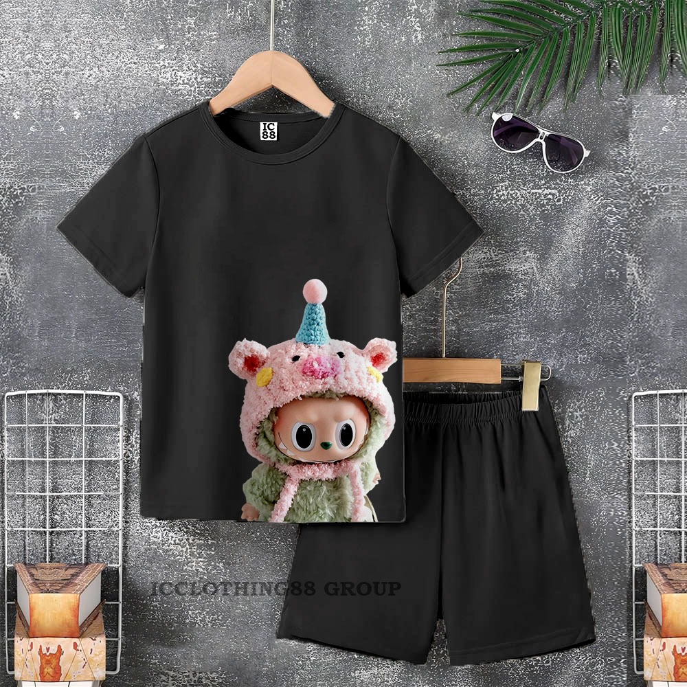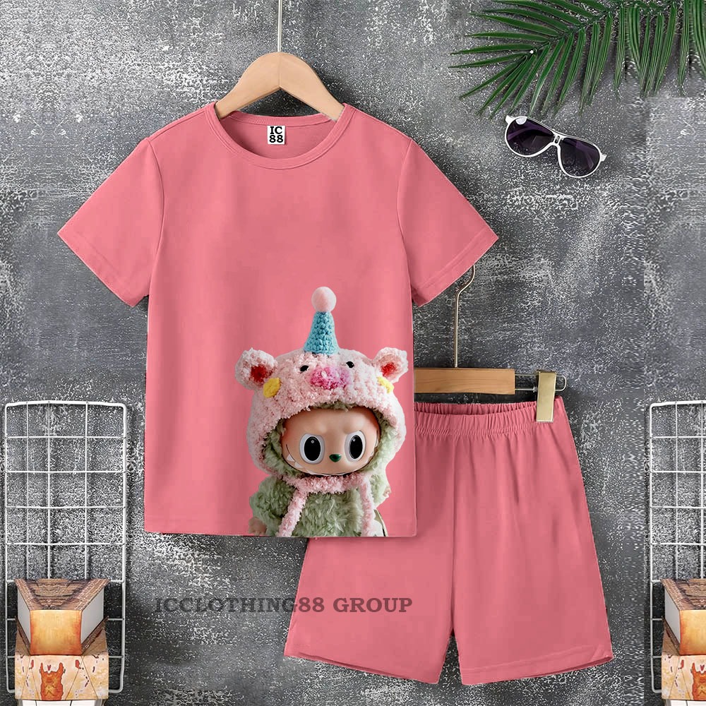 IC88 - BAJU SETELAN ANAK PEREMPUAN USIA 2 - 10 TAHUN MOTIF LABUBU PINK HAT