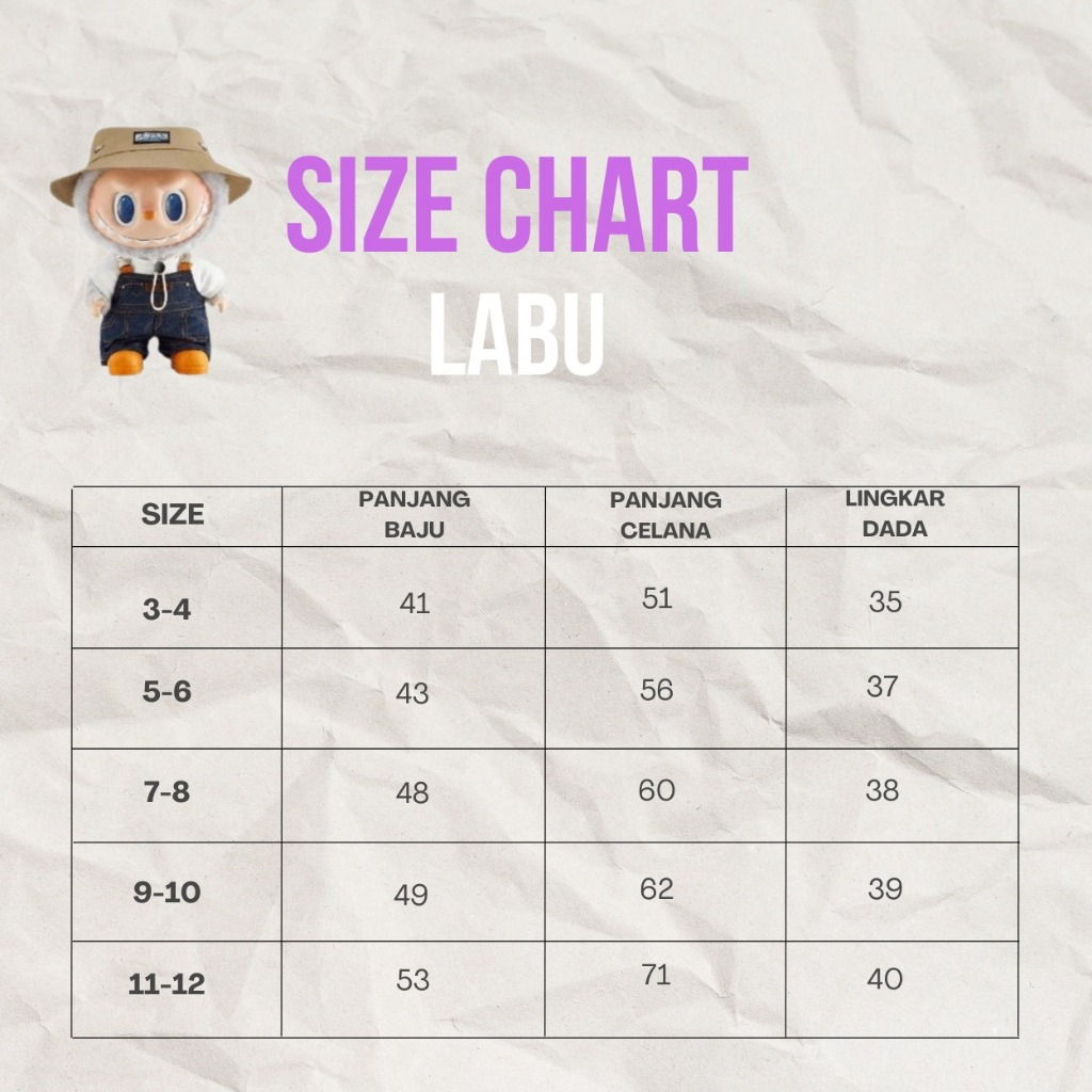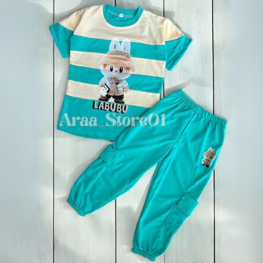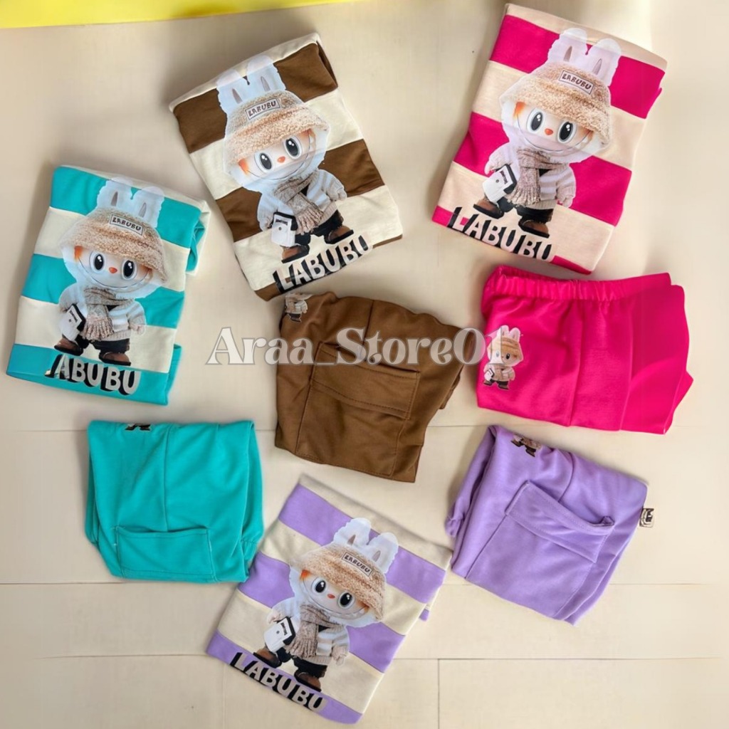 BAJU SETELAN LABUBU ANAK PEREMPUAN CELANA JOGER KARGO USIA 3 SAMPAI 12 TAHUN