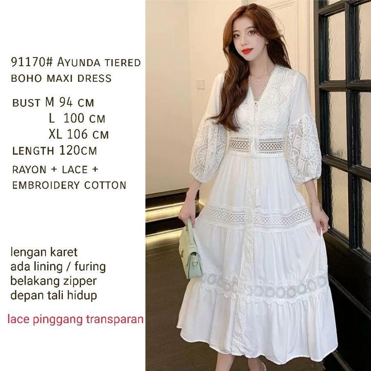 SALE MURAH DRESS 91170 3M THREE M AYUNDA TIERED BOHO MAXI DRES KOREA KOREAN FASHION HARGA GROSIR LARIS IMPORT TERJANGKAU