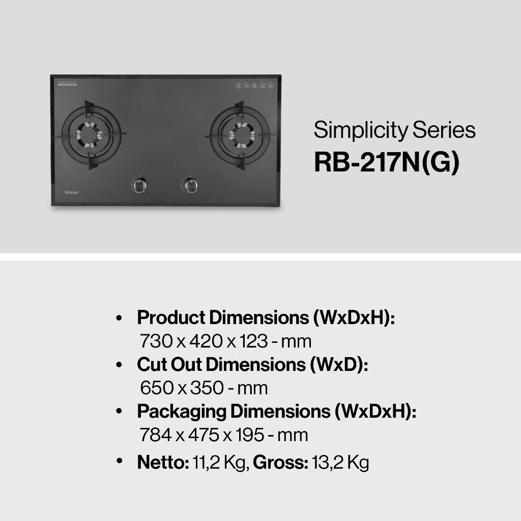 KOMPOR GAS TANAM RINNAI RB-217N(G) RB 217N 2 TUNGKU BERGARANSI