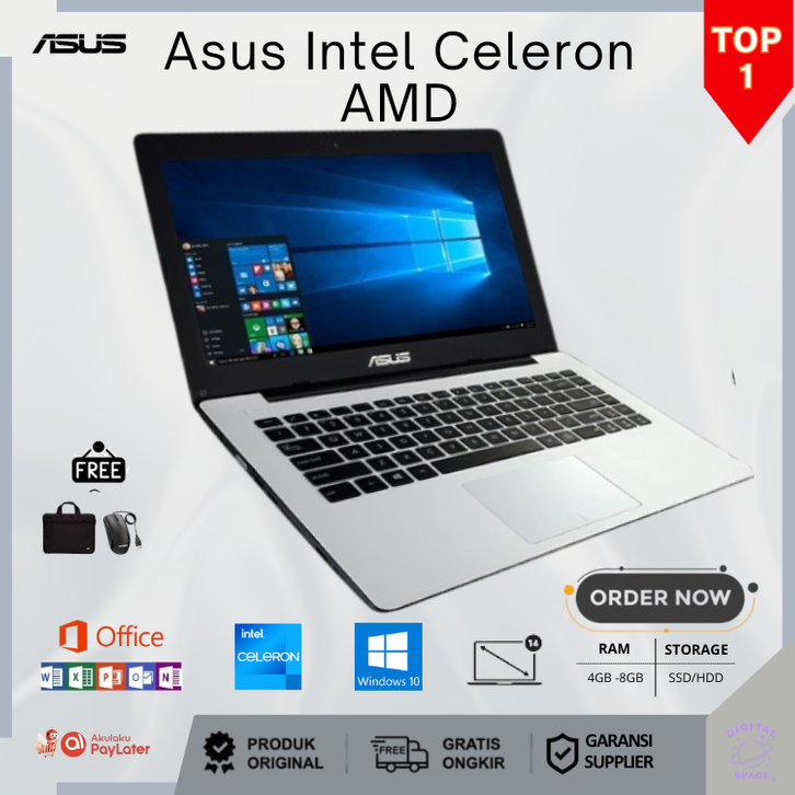 Laptop Asus 14 Inch Intel Celeron AMD RAM 8GB HDD 1TB Windows 10 Second Original Garansi